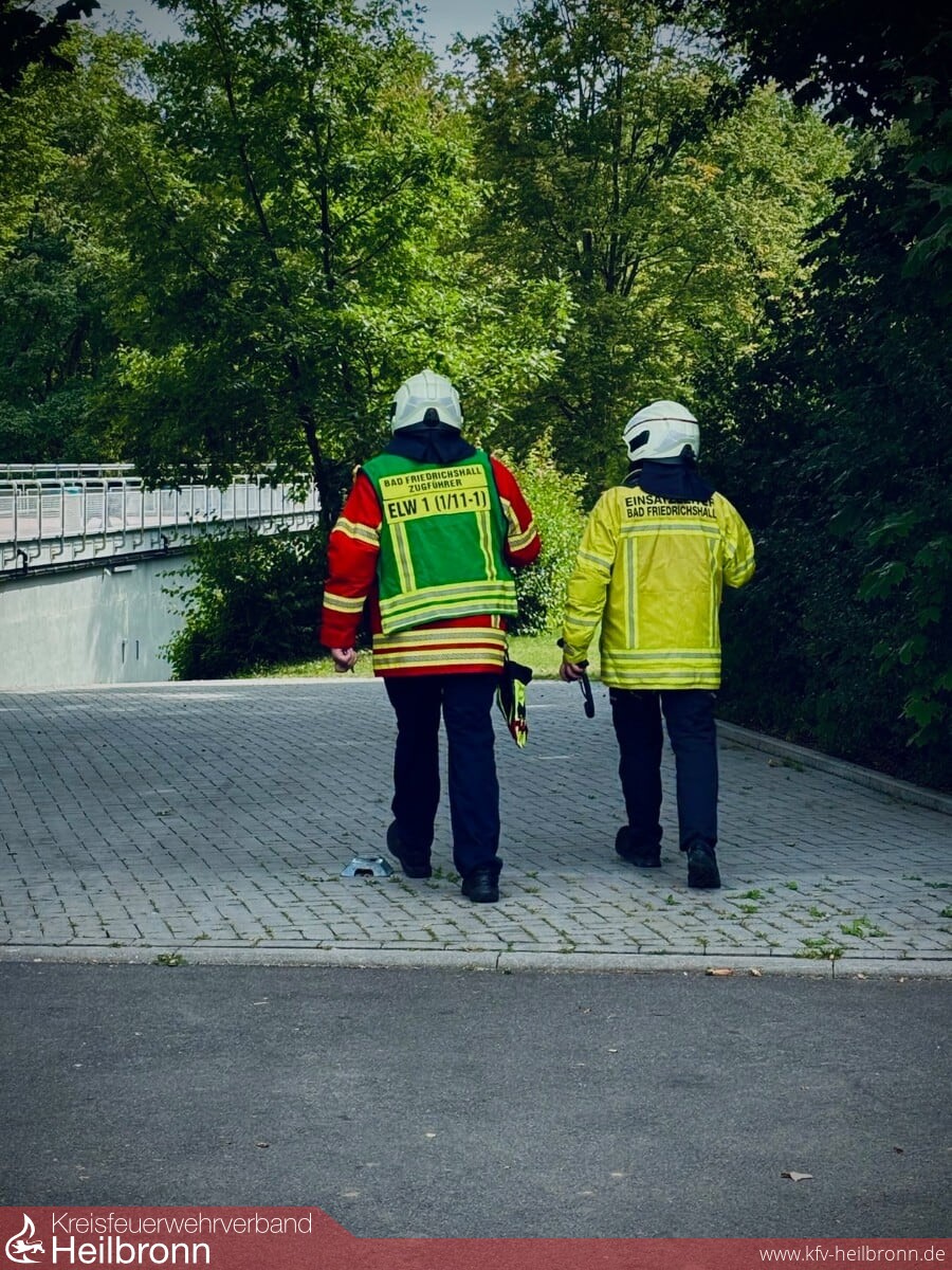 Um 15:30 Uhr wurden alle drei Einsatzabteilungen der Feuerwehr Bad Friedrichshall mit dem Stichwort „Gefahrguteinsatz“ zum Solefreibad Jagstfeld alarmiert. Dort hatte die Warnanlage des Chlorgasraumes ausgelöst. Gemäß der landkreisweiten Alarm- und Ausrückeordnung wurde bei diesem Einsatzstichwort die Gefahrguteinheit aus Bad Rappenau sowie die Messeinheit der Feuerwehr Neckarsulm im Erstalarm mit alarmiert. Beim Eintreffen des Einsatzleiters wurde durch das Aufsichtspersonal das Bad bereits geräumt. Im Bereich des Chlorgasraumes war ein leichter Chlorgasgeruch wahrnehmbar. Ein Trupp unter Atemschutz konnte die Flaschen zügig abschiebern und den Raum belüften. Vom Fachberater Chemie wurde anschließend der Raum freigemessen und die Einsatzstelle an die Stadtwerke übergeben. Durch die Warnanlage sowie dem umsichtigen Verhalten sowohl der Badeaufsicht wie auch der Badegäste, kam es zu keinen Verletzten.