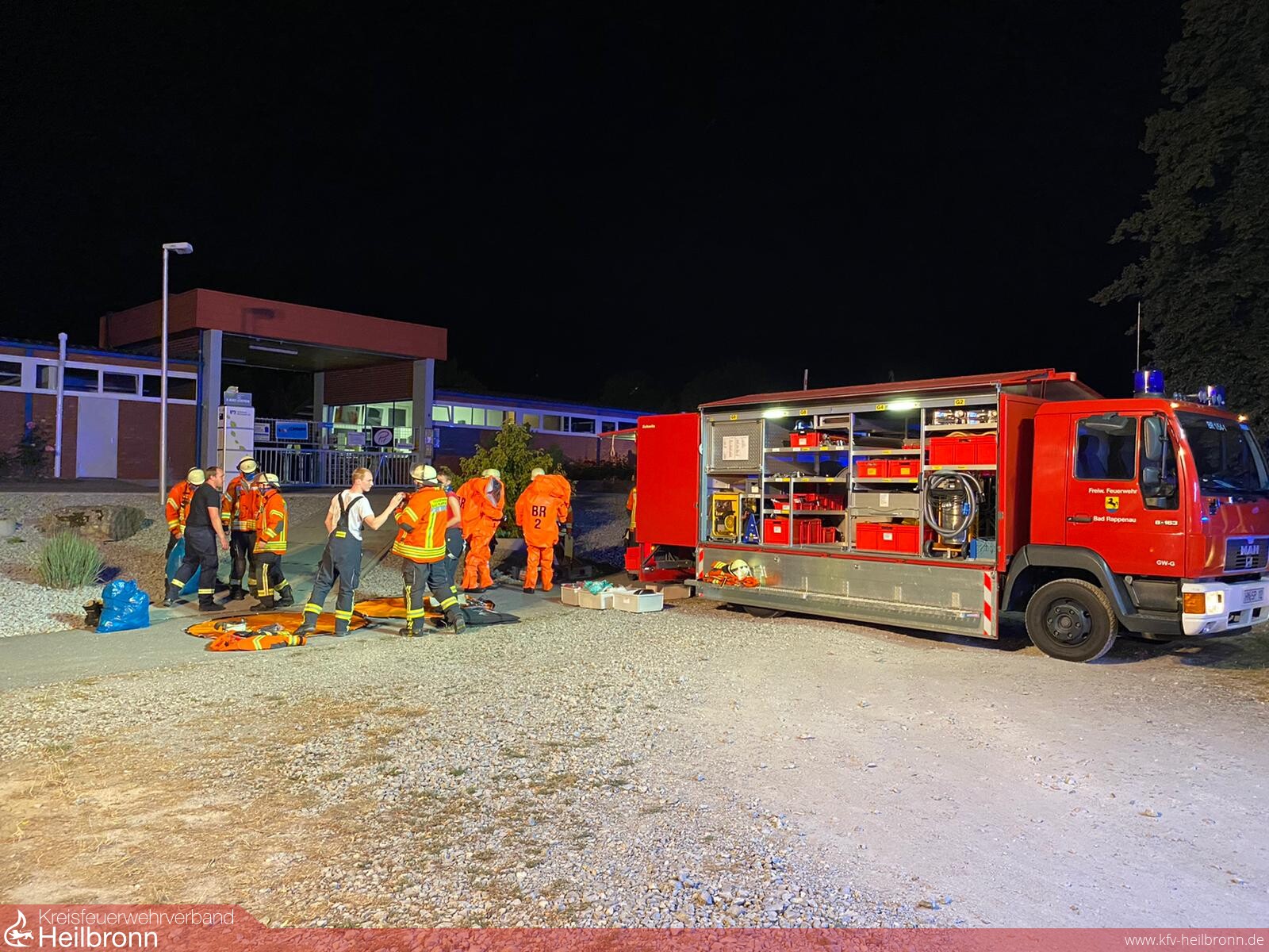 Eine Menschenrettung war nicht nötig, da der anliegende Zeltplatz bereits evakuiert war und die Gäste sich in sicherer Entfernung befanden. Spezialkräfte waren bereits mitalarmiert. Ein Großaufgebot an Feuerwehrkräften war aus dem Landkreis unterwegs nach Neudenau: ein Rüstzug aus Möckmühl, der Gefahrstoffzug aus Bad Rappenau und die Messeinheit aus Neckarsulm, außerdem zwei Fachberater „Gefahrgut“ bzw. „Chemie“.