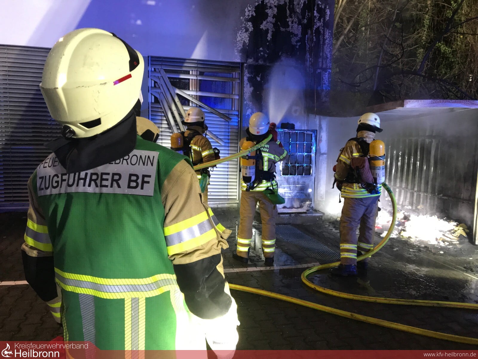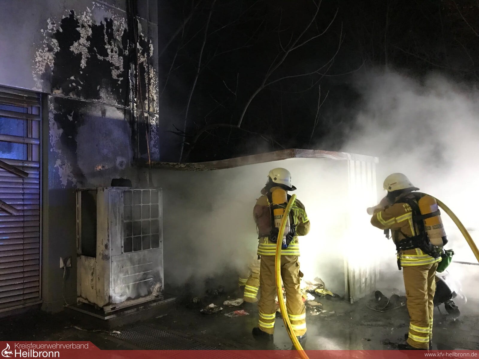 Nicht auszudenken welches Ausmaß gestern ein Brand um 20.35 Uhr in der Moltkestraße angenommen hätte, wenn dieser später bemerkt und die Feuerwehr nicht so schnell zur Stelle gewesen wäre. Beim Eintreffen brannte ein 1100 Liter Müllcontainer unter einer Blechüberdachung in voller Ausdehnung. Die Flammen drohten bereits über die Fenster ins Innere des Bürogebäudes zu gelangen. Durch den Brand wurden neben Schäden an der Hausfassade auch eine Klimaanlage sowie der Unterstand in Mitleidenschaft gezogen.