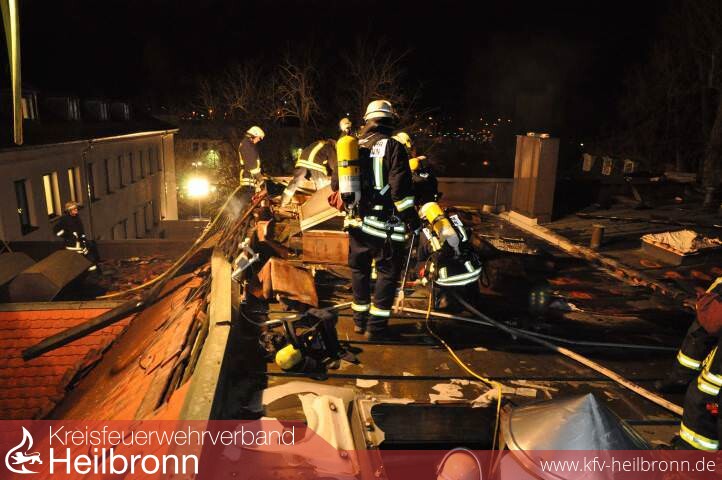 Im Einsatz waren die Berufsfeuerwehr sowie die Abteilungsfeuerwehren von Heilbronn-Stadt, Böckingen, Neckargartach und Klingenberg mit insgesamt 17 Einsatzfahrzeugen und 72 Mann Besatzung.