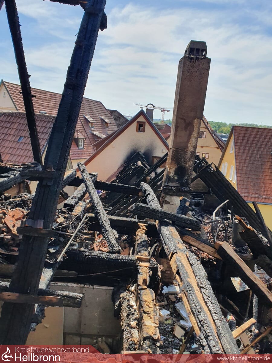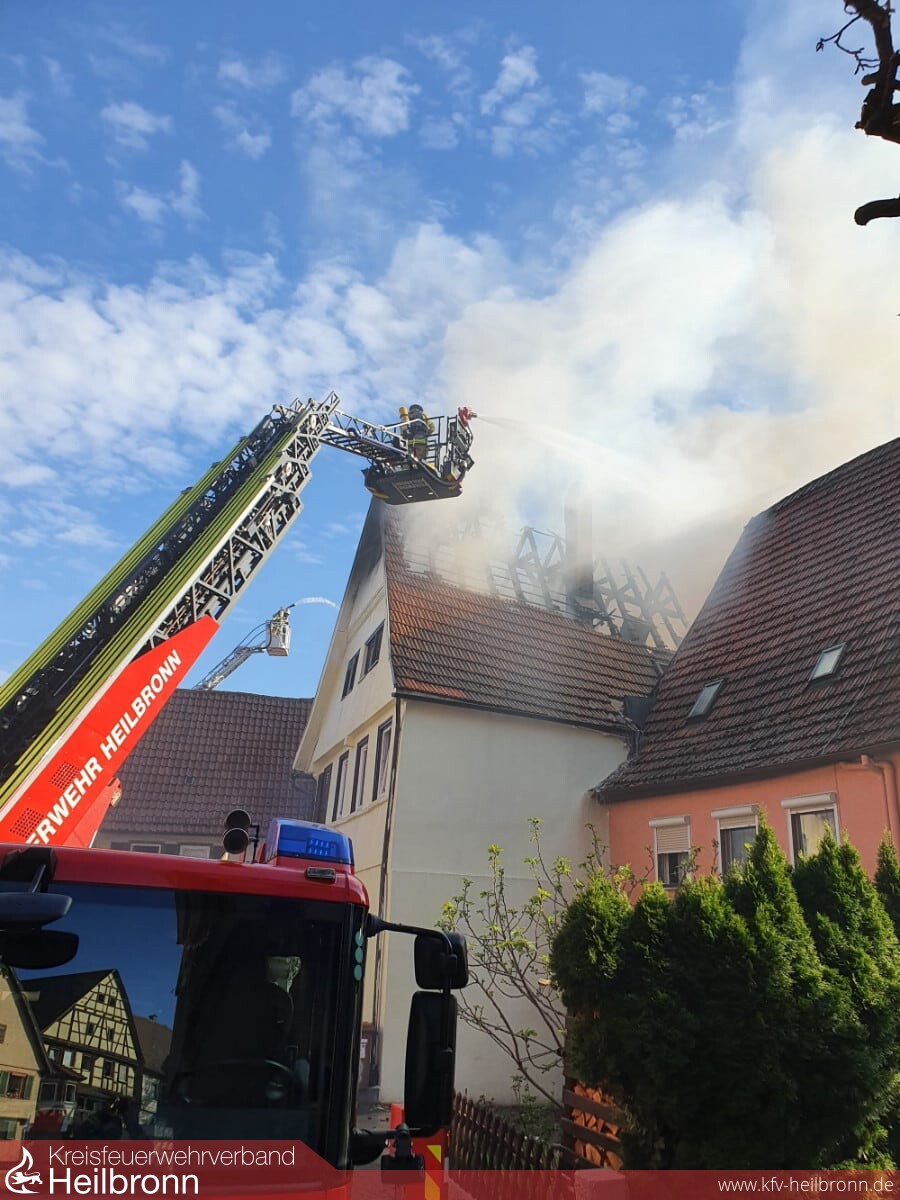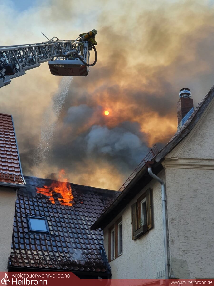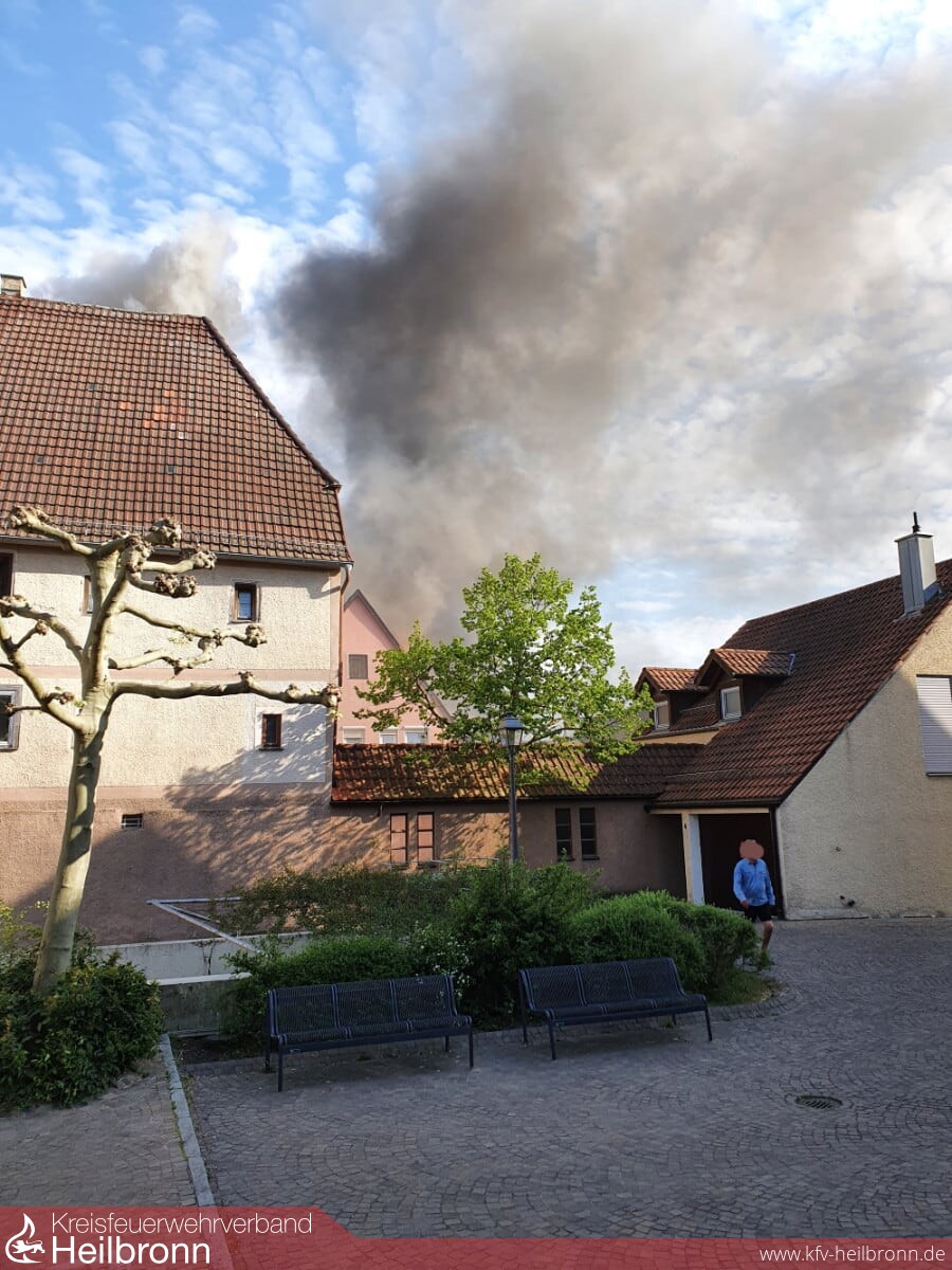 Über zwei Drehleitern der Feuerwehr Lauffen und der Berufsfeuerwehr Heilbronn erfolgten Löschangriffe von der Dachseite her. Nach massiven Löschangriffen im Innenangriff und von der Dachseite her, konnte der Brand zügig unter Kontrolle gebracht werden. Da das Hydrantennetz für die Löschwasserversorgung teilweise in die Knie gegangen ist, wurde zudem eine Wasserversorgung durch Wasserentnahme aus dem Neckar aufgebaut. Mit Drohnen der Berufsfeuerwehr Heilbronn war es möglich, sich von der Luftseite her einen Überblick über das Schadensausmaß und erforderliche Maßnahmen zu machen. Dank der hervorragenden Zusammenarbeit der Berufsfeuerwehr und der Feuerwehr Lauffen konnte der Brand erfolgreich abgelöscht werden.