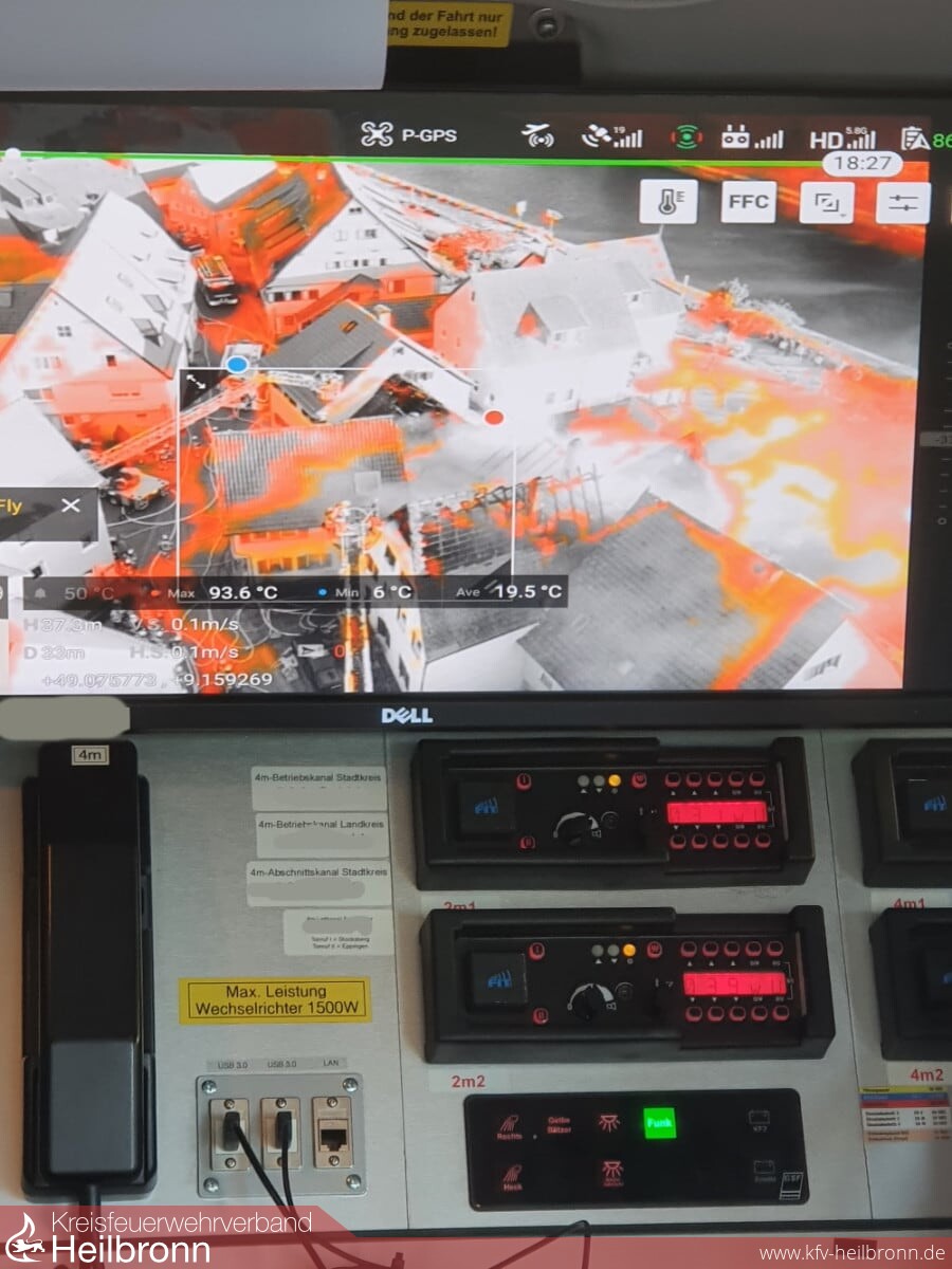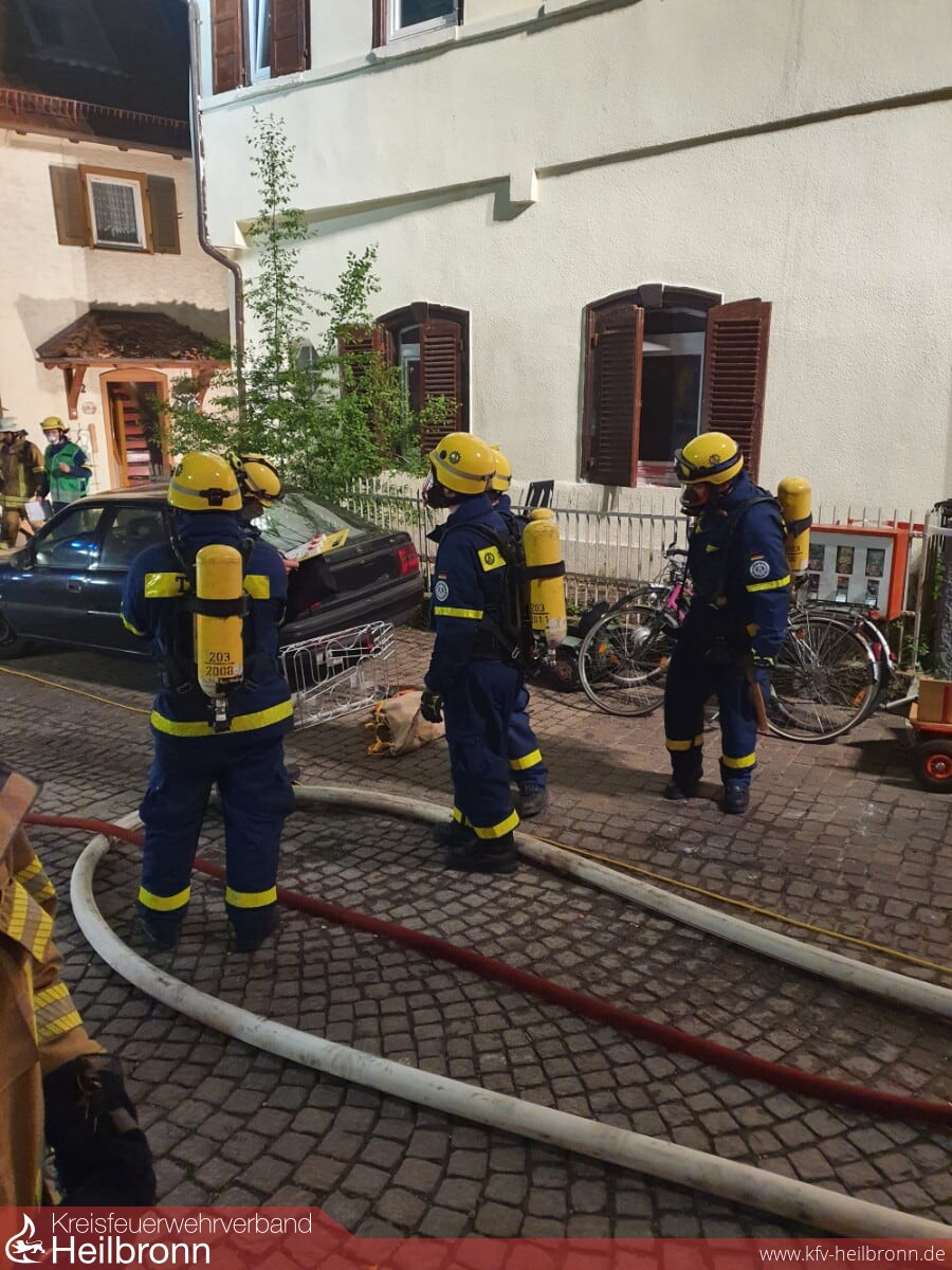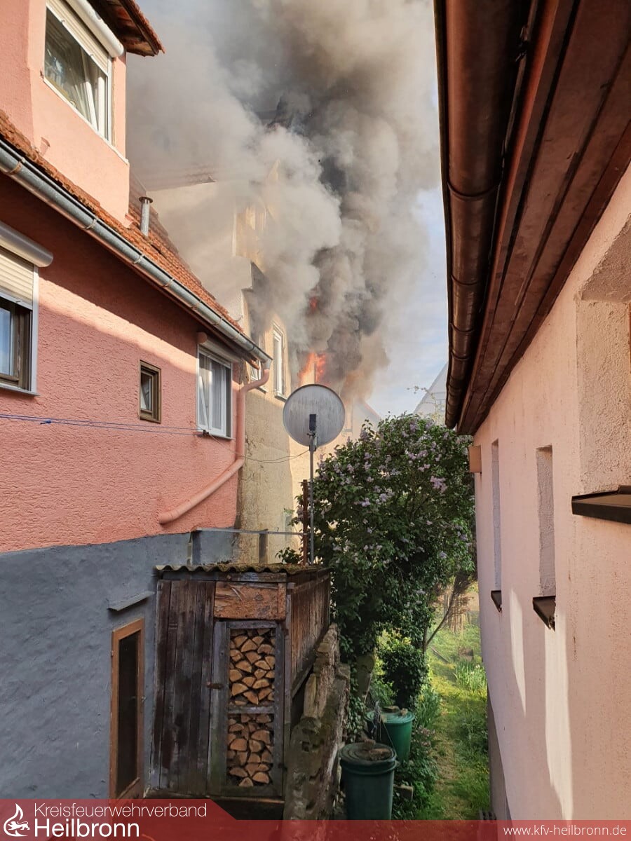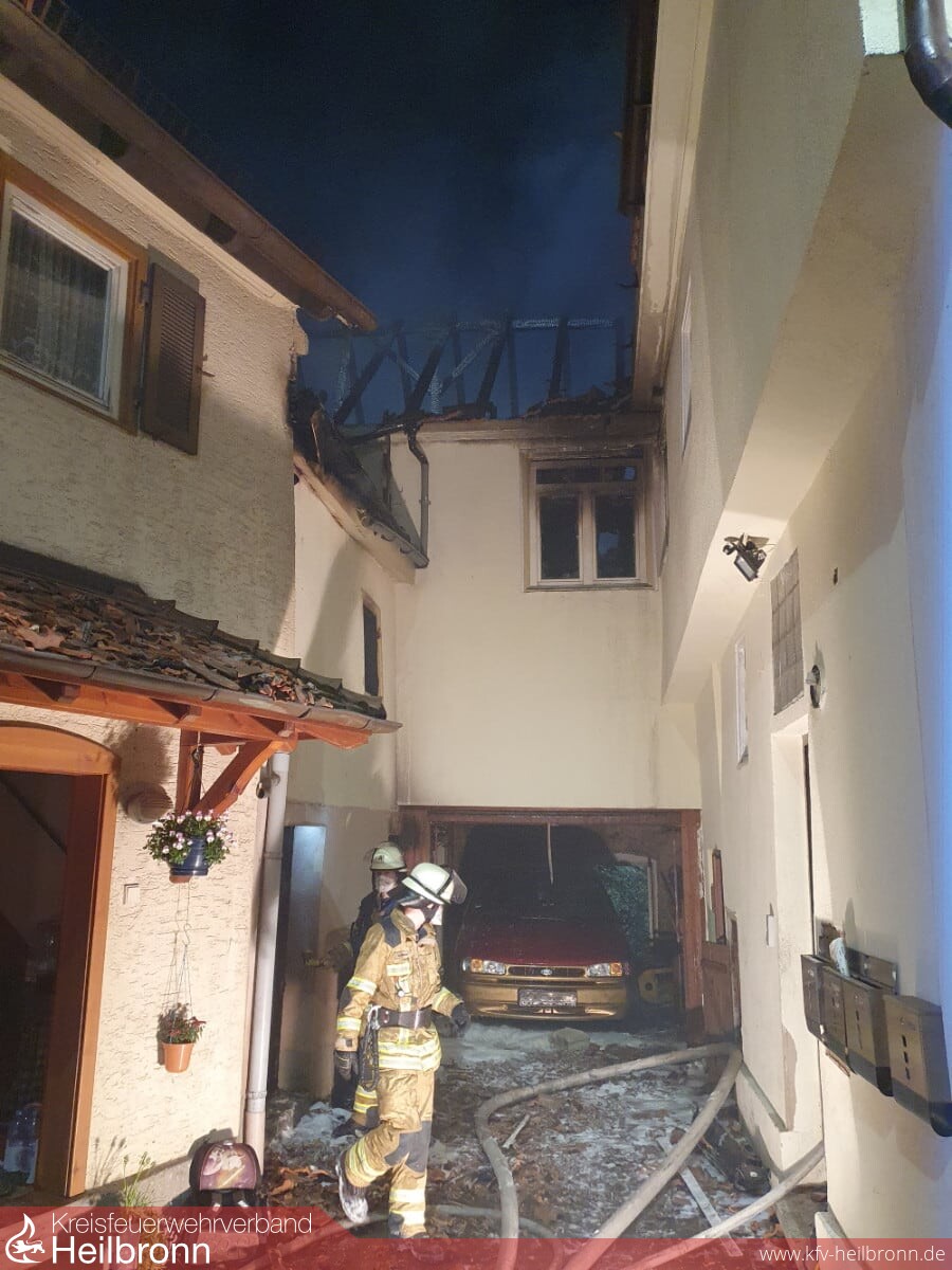 Über zwei Drehleitern der Feuerwehr Lauffen und der Berufsfeuerwehr Heilbronn erfolgten Löschangriffe von der Dachseite her. Nach massiven Löschangriffen im Innenangriff und von der Dachseite her, konnte der Brand zügig unter Kontrolle gebracht werden. Da das Hydrantennetz für die Löschwasserversorgung teilweise in die Knie gegangen ist, wurde zudem eine Wasserversorgung durch Wasserentnahme aus dem Neckar aufgebaut. Mit Drohnen der Berufsfeuerwehr Heilbronn war es möglich, sich von der Luftseite her einen Überblick über das Schadensausmaß und erforderliche Maßnahmen zu machen. Dank der hervorragenden Zusammenarbeit der Berufsfeuerwehr und der Feuerwehr Lauffen konnte der Brand erfolgreich abgelöscht werden.