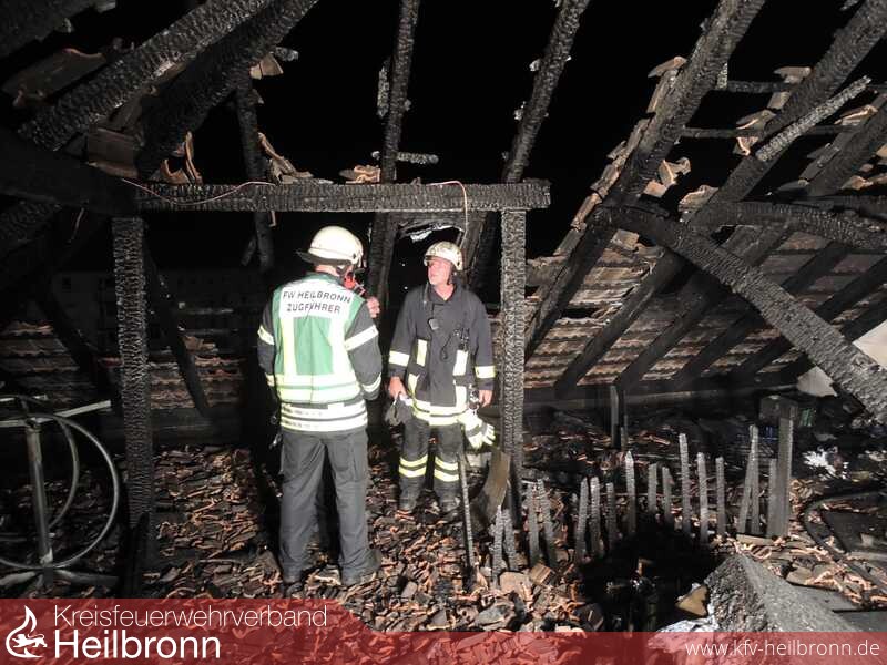 Die Nachlöscharbeiten zogen sich noch mehrere Stunden hin. Zur Sicherheit wurde eine Brandwache an der Einsatzstelle eingesetzt.