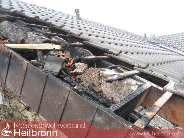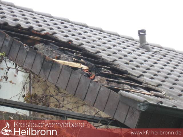 Aus bisher unbekannter Ursache brannte auf einer Terrasse auf einer Garage gelagertes Papier. Das Feuer griff auf die Ortgangverschalung über und gelangte unter die Dachziegel. Beim Eintreffen der Feuerwehr hatte der Eigentümer Löscharbeiten mit einem Feuerlöscher und einem Gartenschlauch begonnen. Das Dach wurde von der Feuerwehr in einer Fläche von ca. 2 qm abgedeckt und Nachlöscharbeiten vorgenommen. Durch das schnelle Eingreifen des Eigentümers und der Feuerwehr konnte ein größerer Schaden vermieden werden.