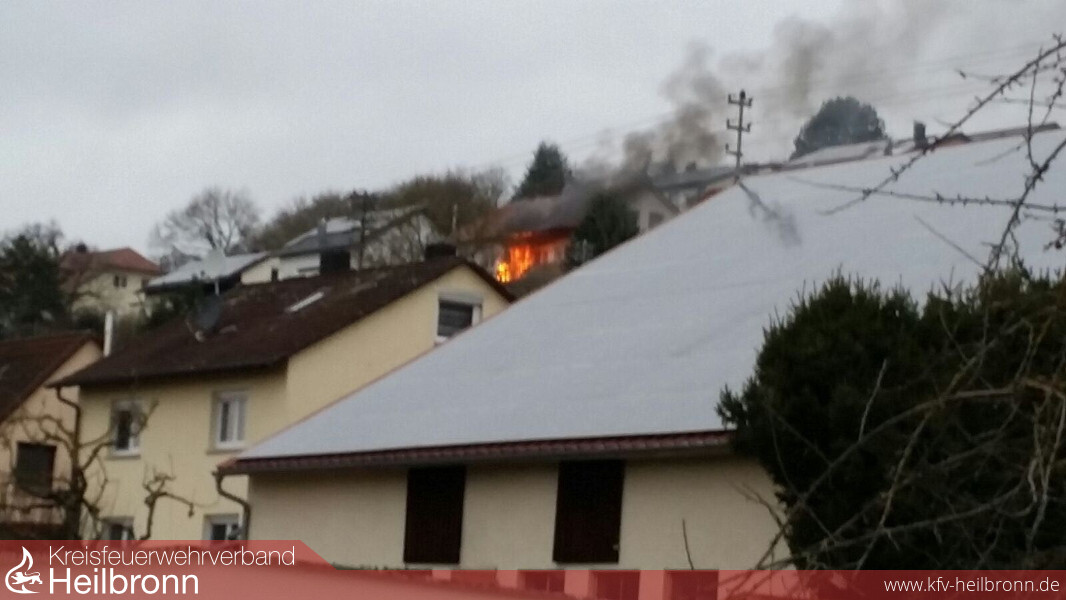 Gerade noch rechtzeitg traf die Feuerwehr bei einem Brand im Neudenauer Blumenweg ein. Ein Dachstockbrand konnte in letzter Minute verhindert werden. Mit Stichwort Zimmerbrand waren die beiden Einsatzabteilungen Neudenau und Herbolzheim alarmiert worden.