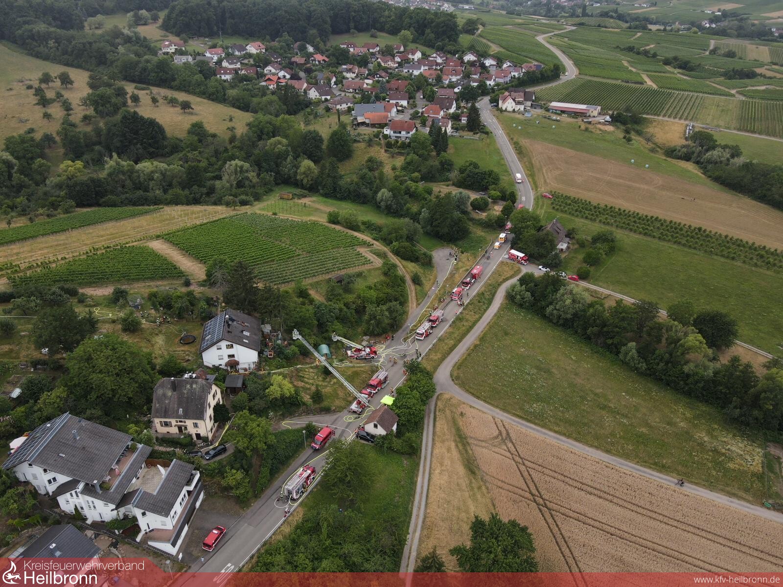 Löwensteins Bürgermeister Dr. Eberhard Birk und der diensthabende Kreisbrandmeister Uwe Thoma machten sich ebenfalls ein Bild von den Löscharbeiten vor Ort und unterstützten die Einsatzleitung. Die DRK Ortsvereine aus Löwenstein und Obersulm stellten während des Einsatzes die Verpflegung und Betreuung der Einsatzkräfte sicher.