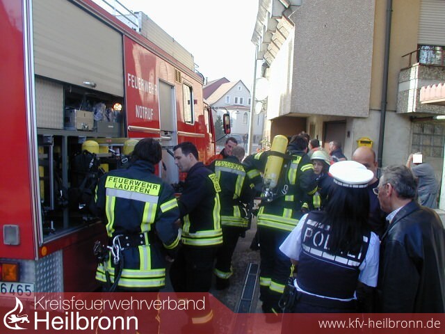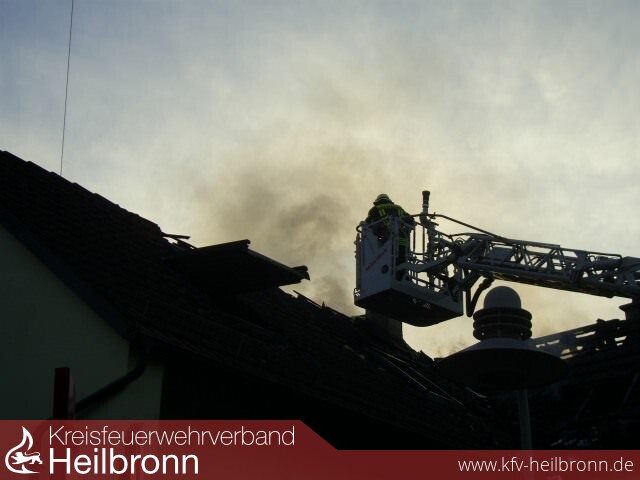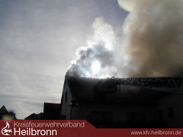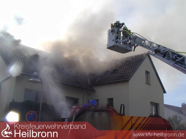 Bereits auf der Anfahrt zur Einsatzstelle war eine starke Rauchentwicklung zu erkennen. Dort eingetroffen, veranlasste der Einsatzleiter, nachdem der Dachstock in dichten Rauch eingehüllt und ein Flammenaufschlag erkennbar war, die Alarmierung des GW-AS der Berufsfeuerwehr Heilbronn. Die Bewohner des Gebäudes wurden durch einen aufmerksamen Verkehrsteilnehmer auf den Brand aufmerksam gemacht und konnten so alle das Gebäude selbst verlassen, wo diese dann anschließend vom Rettungsdienst betreut und behandelt wurden.