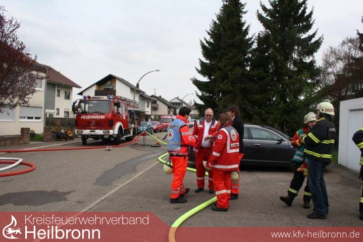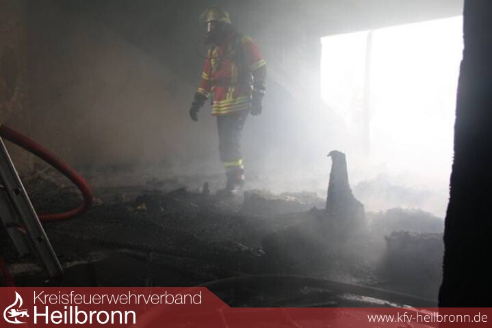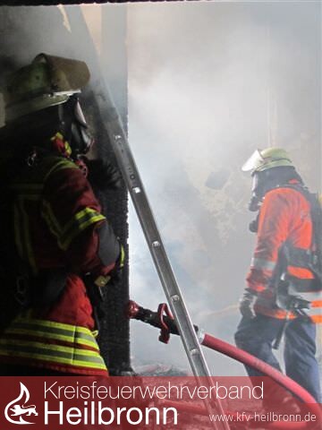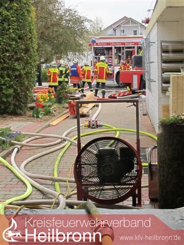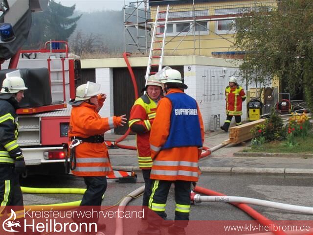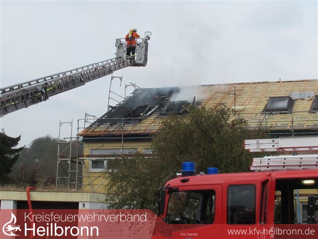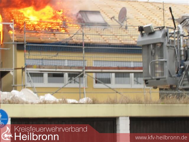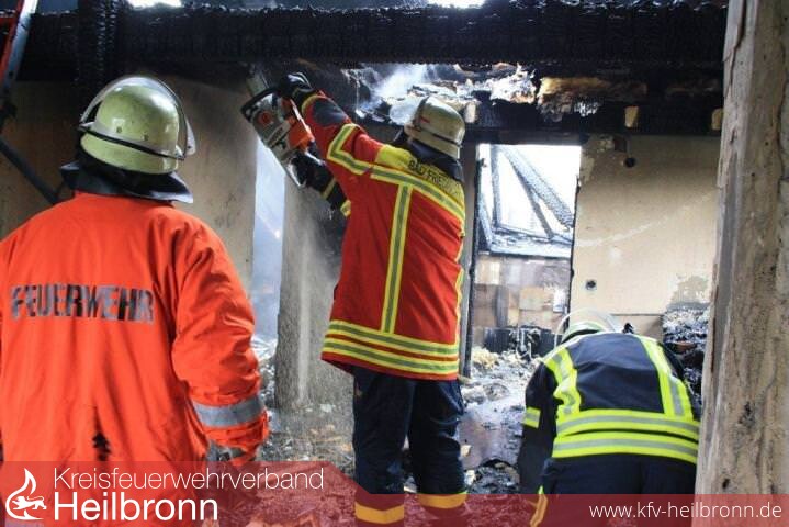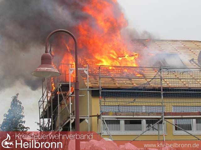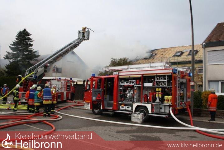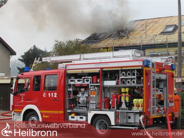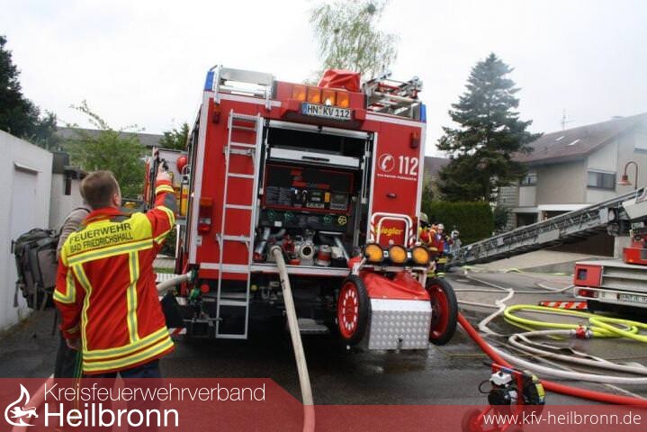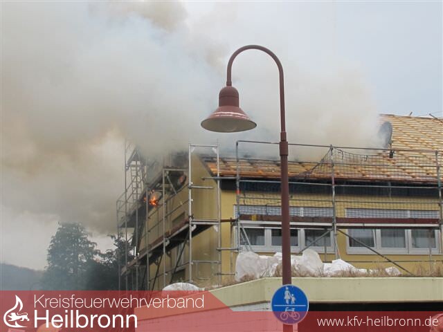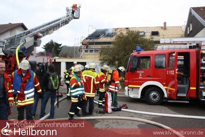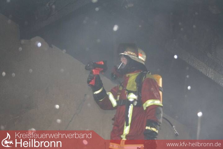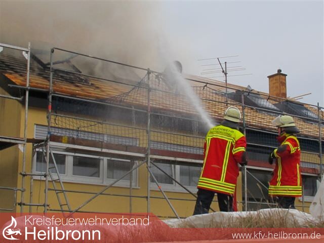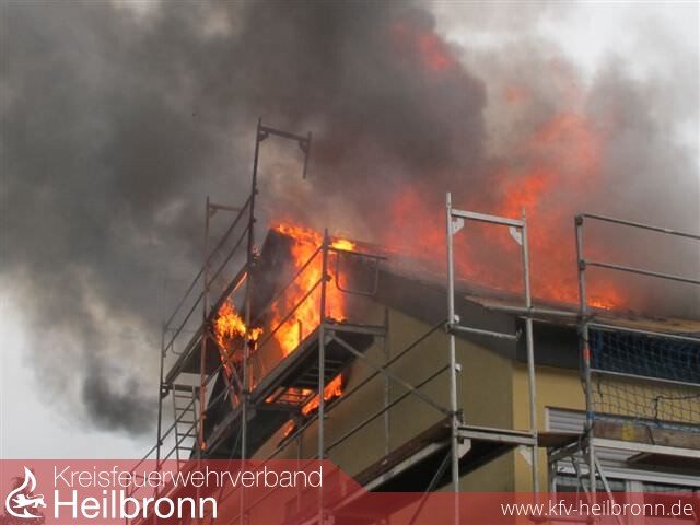 Nach der Alarm- und Ausrückeordnung wurde nach Eingang des Notrufs bei der Integrierten Leitstelle neben der Feuerwehr Offenau gleichzeitig die Feuerwehr Bad Friedrichshall alarmiert. Beim Eintreffen der Einheiten stand der Dachstuhl in Vollbrand. Zwei der Dachdeckerarbeiter befanden sich noch auf dem Dach und versuchten mit einem Wasserschlauch zu löschen. Dabei zogen sie sich Rauchgasverletzungen zu.