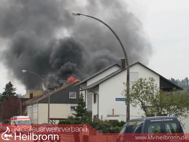 Zu einem Dachstuhlbrand kam es am Montagmorgen gegen 9 Uhr in der Kolpingstraße in Offenau.