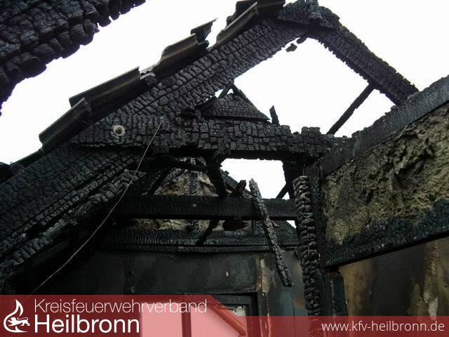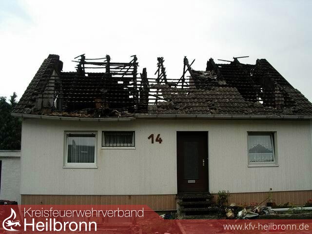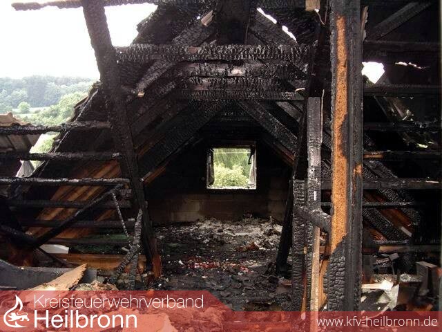 Durch Blitzeinschlag geriet der Dachstuhl eines Einfamilienhauses in Möckmühl-Korb in Brand.