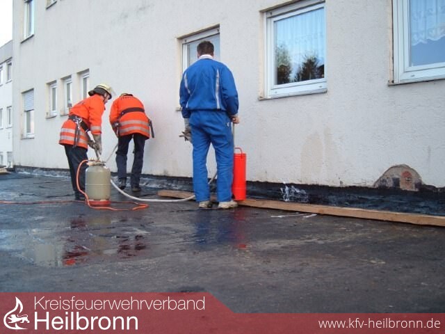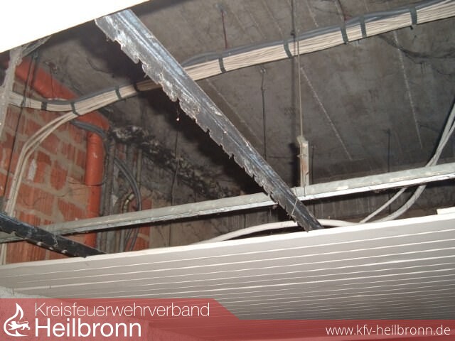 Aus diesem Grund wurde telefonisch eine Wärmebildkamera von der Berufsfeuerwehr Heilbronn angefordert, mit deren Hilfe es dann gelang, den genauen Brandherd in der Dehnfuge festzustellen. Daraufhin wurde der Schwelbrand mit einer Kübelspritze sowie Wasser / Schaum- Gemisch abgelöscht.
