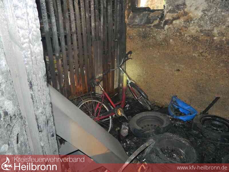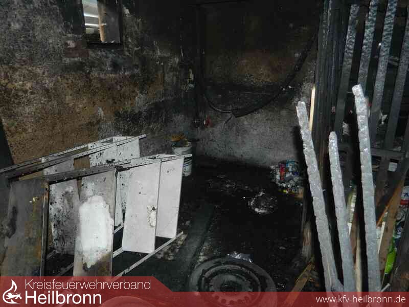 Das Feuer im Keller wurde mit einem Löschrohr über den Treppenabgang gelöscht. Ein Übergreifen auf weitere Räume wurde verhindert.