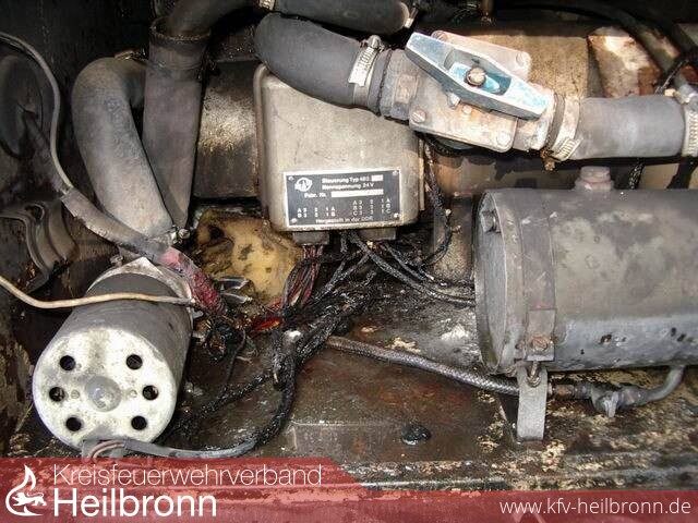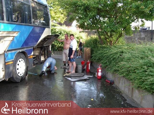 Der Reisebus war bereits mit den 54 Schülern und ihren Betreuern besetzt und zur Abfahrt bereit, als im Heck des Busses plötzlich eine starke Rauchentwicklung auftrat. Gleich darauf schlugen Flammen aus dem Seiten und Heckbereich. Binnen kürzester Zeit war der Bus auch im Innern verraucht. Die Schüler wurden sofort aus dem Fahrzeug geholt. Zwei anwesende Feuerwehrmänner begannen mit vier herbeigeholten Feuerlöschern den Brand in Schach zu halten. Anschließend eilten sie ins nahe gelegene Gerätehaus und rückten mit dem TLF zur Einsatzstelle aus. Das noch leicht brennende Fahrzeug wurde vollends abgelöscht und gekühlt. Der Brand entwickelte sich durch einen elektrischen Defekt im Bereich der Klimaanlage, welche von den beiden ungarischen Busfahrern später überbrückt wurde.