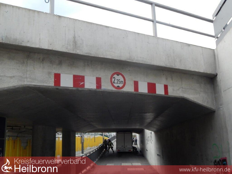 Vor Ort hatte der Fahrer eines Kleintransporters offensichtlich die auf 2,25 m begrenzte Durchfahrtshöhe außer Acht gelassen.