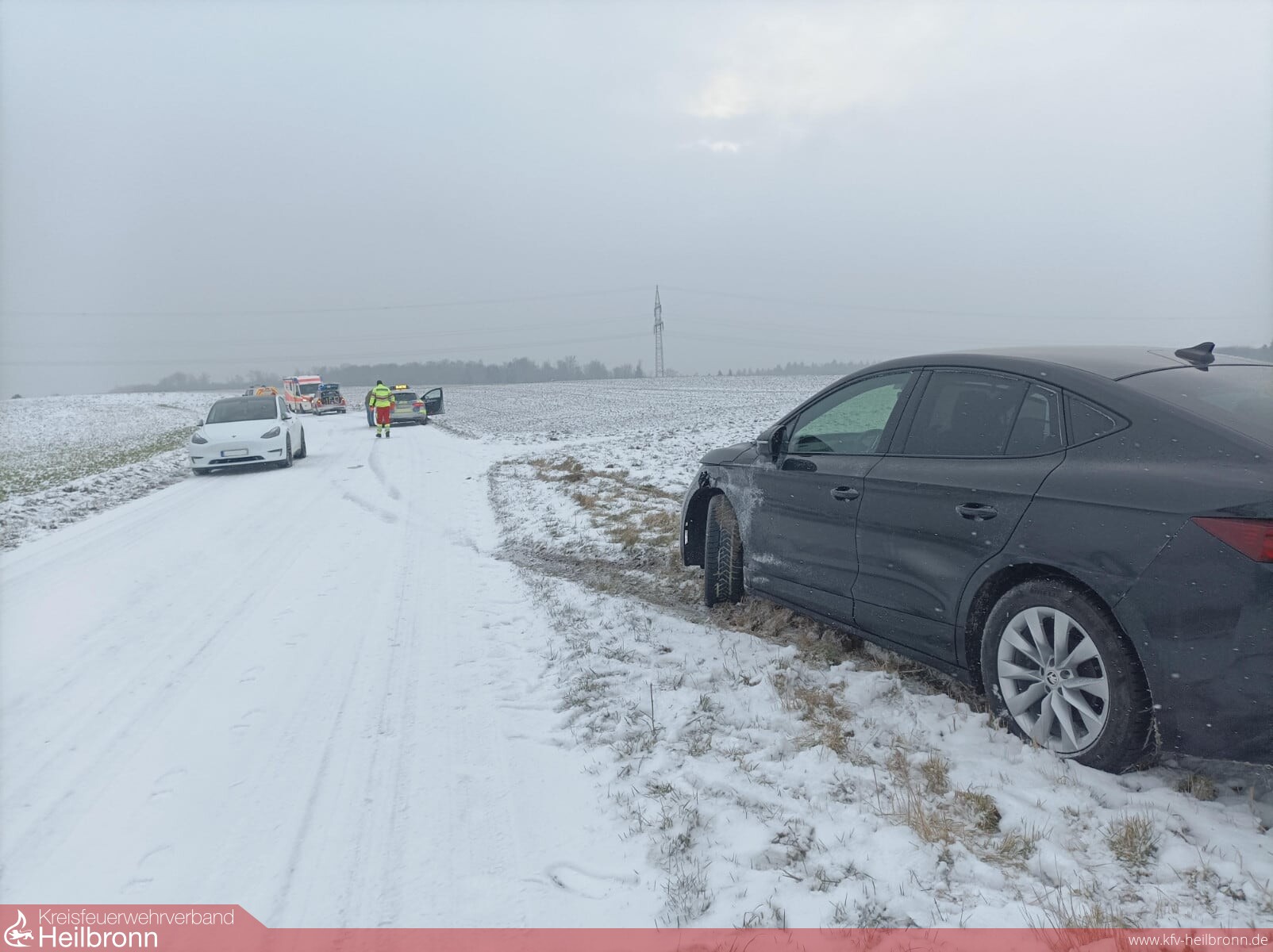 Zwei Fahrzeuge hatten sich in einer Kurve auf spiegelglatter Fahrbahn touchiert und wurden beide in den Straßengraben gedrängt, bei beiden Fahrzeugen lösten die Airbags aus. So kam es zur eCall-Alarmierung, wo durch das Fahrzeug automatisch ein Notruf abgesetzt wird.