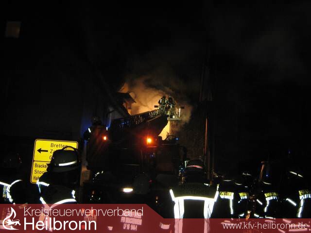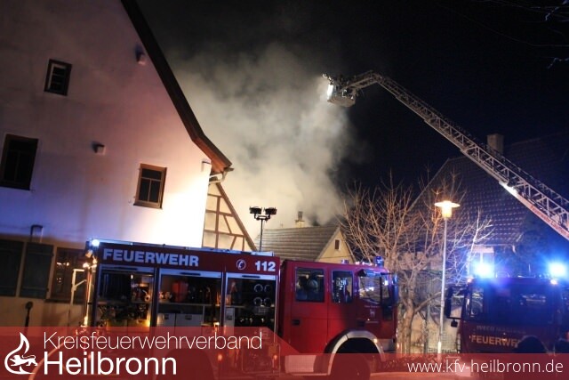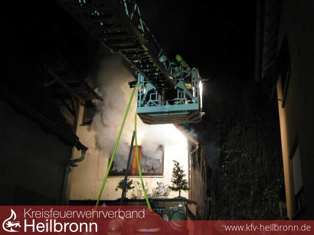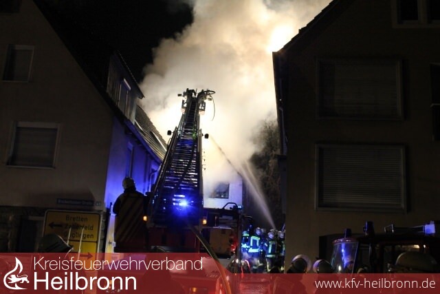 Nahezu abgebrannt ist ein älteres Einfamilienhaus in der Brackenheimer Straße kurz vor 22.00 Uhr. Der Brand brach im Wohnzimmer aus bislang unbekannter Ursache aus.