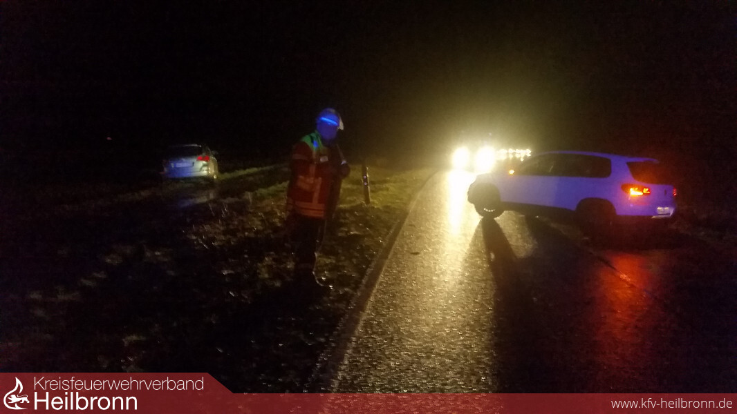 Die Person war mit ihrem Fahrzeug aus Siglingen kommend in einer langgezogenen Rechtskurve von der Fahrbahn abgekommen und nach links in einen Acker geraten, dort nach wenigen Metern zum Stehen gekommen.