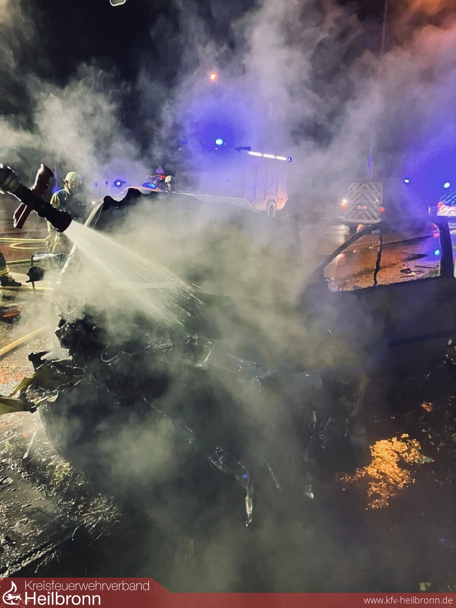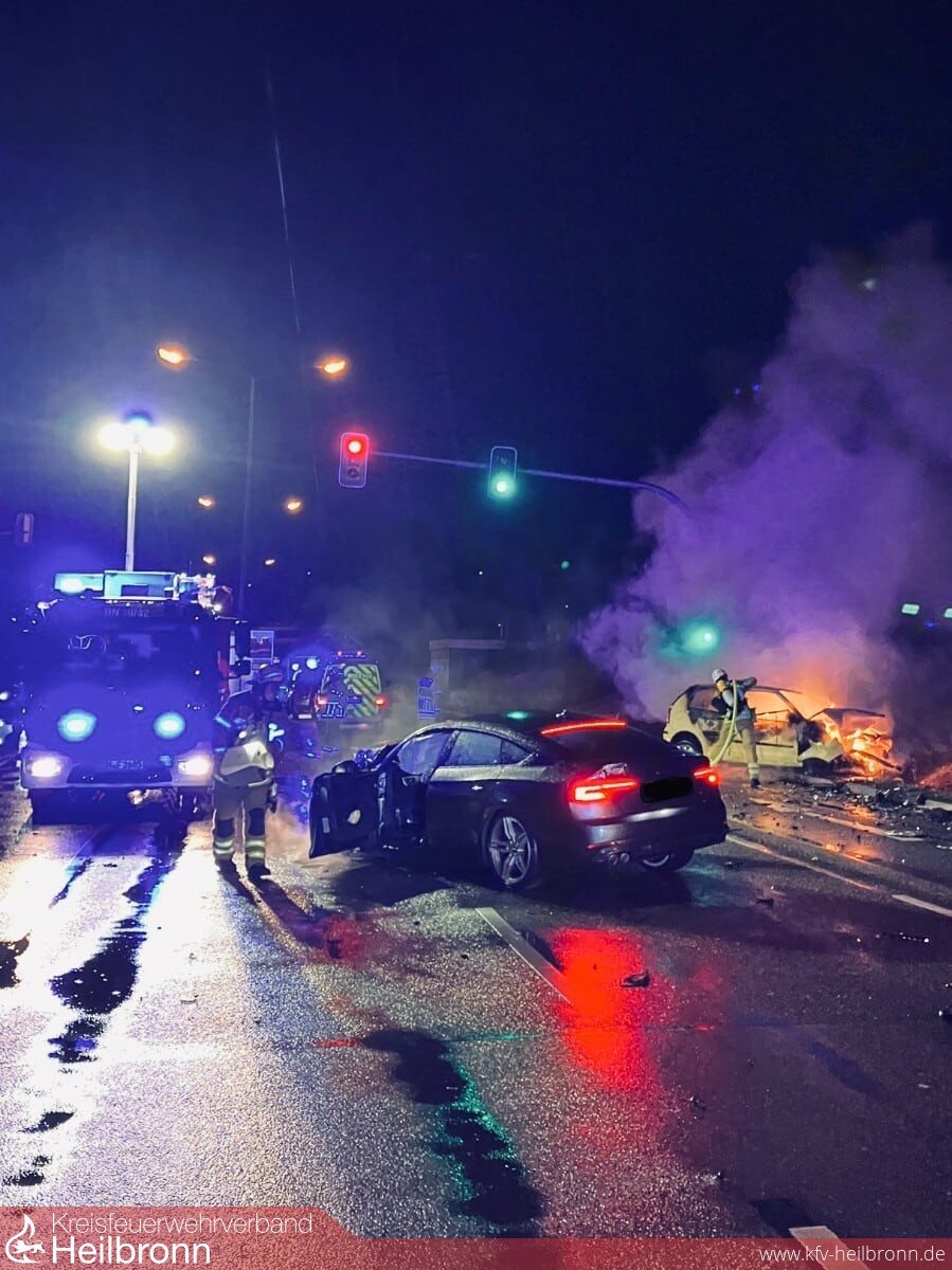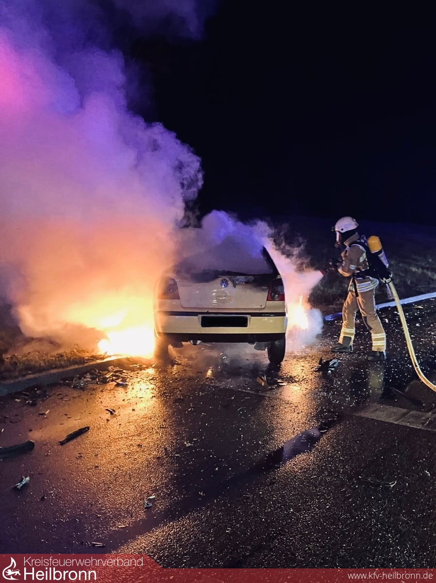 Die gestrige Schicht hatte wieder so einiges für die Einsatzkräfte zu bieten. Der spektakulärste Einsatz ereignete sich heute Morgen kurz vor 2 Uhr auf der Neckartalstraße. Dort stießen ein Audi sowie ein VW Polo frontal zusammen. Beim Eintreffen an der Einsatzstelle stand der Polo bereits im Vollbrand. Nach ersten Erkenntnissen hatten Ersthelfer den Fahrer noch rechtzeitig aus dem Fahrzeug befreit und ihm so das Leben gerettet. Ein Ersthelfer zog sich hierbei leichte Verletzungen zu.