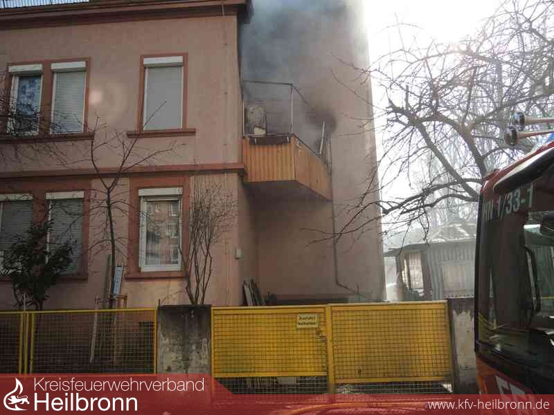 Auf einem Balkon im ersten Obergeschoss eines Mehrfamilienwohnhauses brannten verschiedene Gegenstände in voller Ausdehnung. Das Feuer drohte bereits in die Dachkonstruktion überzugreifen. Erste Befragungen der Anwohner ergaben, dass sich keine Personen mehr im Gebäude befanden.