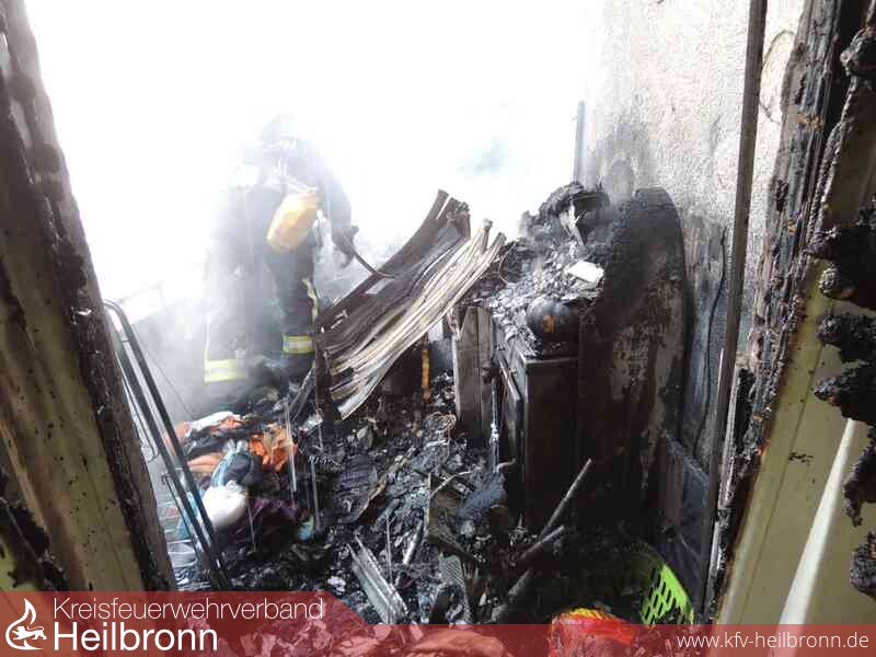 Die Scheibe der Balkontür war durch die große Hitzeeinwirkung bereits geborsten, so dass Flammen und Rauch Schäden in der Wohnung verursachen konnten. Dennoch verhinderte der schnelle Einsatz der Feuerwehr eine Brandausbreitung auf die Dachkonstruktion sowie eine weitere Ausbreitung in der Wohnung.