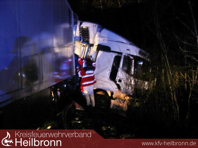 Da während der Einsatzabarbeitung nochmals ein Eisregen niederging, ereigneten sich im näheren Umleitungsumfeld weitere Unfälle, wobei die in Seitengräben gerutschten LKW zum Teil vom THW entladen werden mussten. Die K 2130, zwischen Möckmühl und Lampoldshausen, war deshalb bis 13 Uhr voll gesperrt.