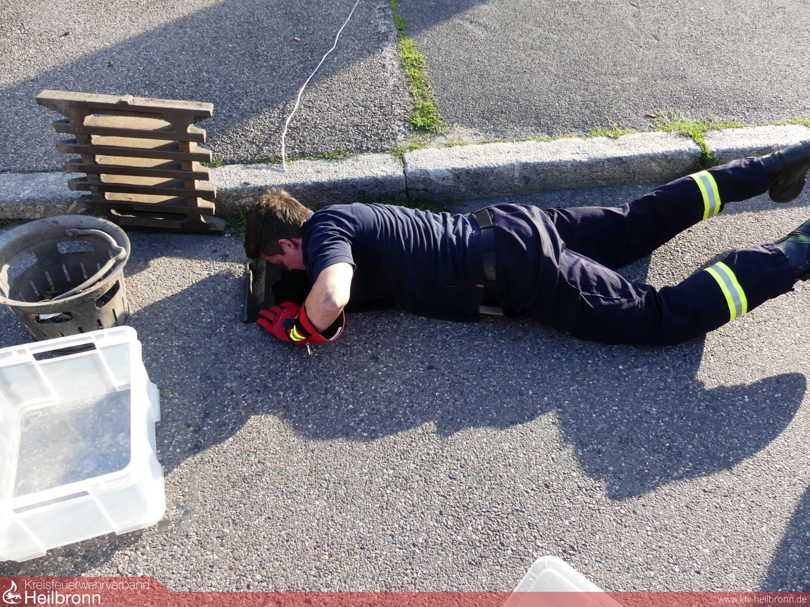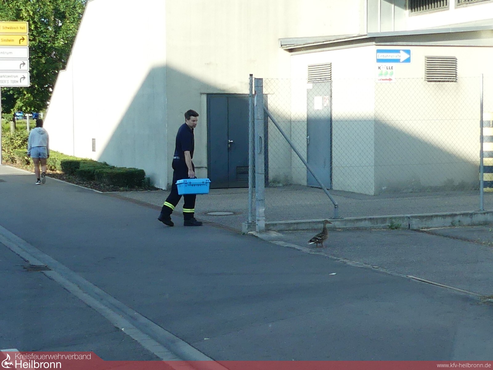 Gegen 07.00 Uhr meldete eine aufmerksame Passantin der Feuerwehr eine Entenmutter, welche aufgeregt um einen Kanaldeckel herumlief.