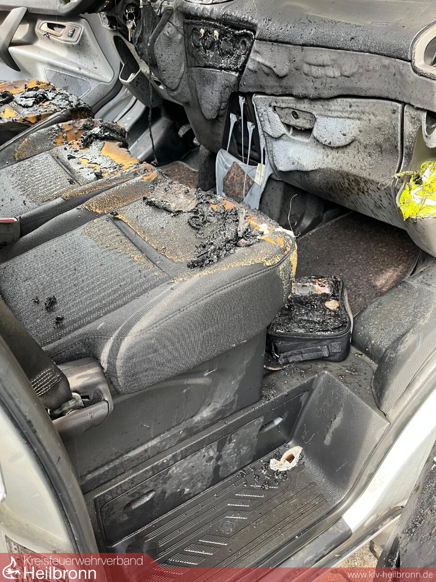 Die Feuerwehr Talheim führte im Anschluss eine Kontrolle des Innenraums mit der Wärmebildkamera durch, um versteckte Glutnester oder eine mögliche Wiederentzündung auszuschließen. Es konnten keine weiteren Gefahren festgestellt werden.