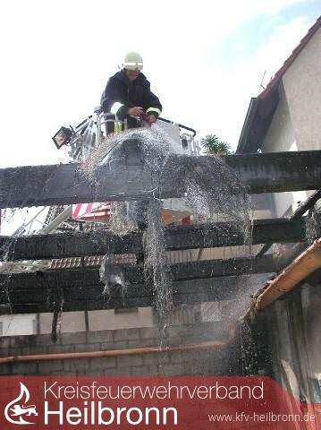 Die alarmierte Heilbronner Feuerwehr rückte mit einem Löschzug an und hatte den Brand rasch unter Kontrolle. Eine weitere Brandausbreitung auf die Garage konnte verhindert werden.