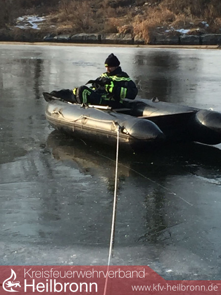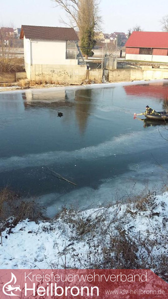 Nachdem die Feuerwehr Oedheim bereits am Donnerstag durch die Tierrettung Unterland e.V zu einer festgefrorenen Ente auf den Kocher alarmiert wurde, musste diese heute erneut zur Unterstützung der Tierrettung Odenwald e.V. ausrücken. Eine vermeintlich festgefrorene Ente saß am Oedheimer Kocherwehr auf dem Eis ohne sich zu bewegen. Die verletzte aber dann doch nicht festgefrorene Ente wurde mit Hilfe eines Bootes gerettet und an die Tierrettung Odenwald e.V. übergeben. Eine Untersuchung bei einem Tierarzt ergab, dass ihr rechter Flügel gebrochen ist. Ohne das Eingreifen der Tierrettung sowie der Feuerwehr hätte sie die missliche Lage auf dem zugefrorenen Kocher wohl nicht überlebt.