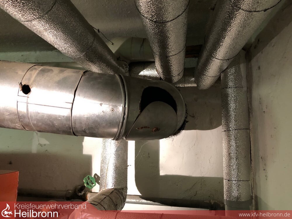 Zu einer „Rauchentwicklung im Gebäude“ wurde die Abteilung Möckmühl in den Brandhölzlesweg gerufen. Die Hausbesitzerin sprach von mehreren Explosionen und grellen Blitzen in ihrem Keller. Beim Eintreffen der Einsatzkräfte lief die Gasheizung jedoch störungsfrei. Allerdings war die Abgasabführung aus der Halterung gesprengt und die Revisionsklappe komplett offen, weshalb die Anlage mehrmals ein- und wieder ausgeschaltet wurde. Bereits beim dritten Versuch kam es dann zu keiner ordnungsgemäßen Zündung, Gas strömte unkontrolliert ein und verpuffte nach kurzer Zeit mit einem lauten Schlag. Die Feuerwehr nahm die Anlage sofort außer Betrieb, schloss die Gaszuführung und verständigte den Wartungsdienst.
