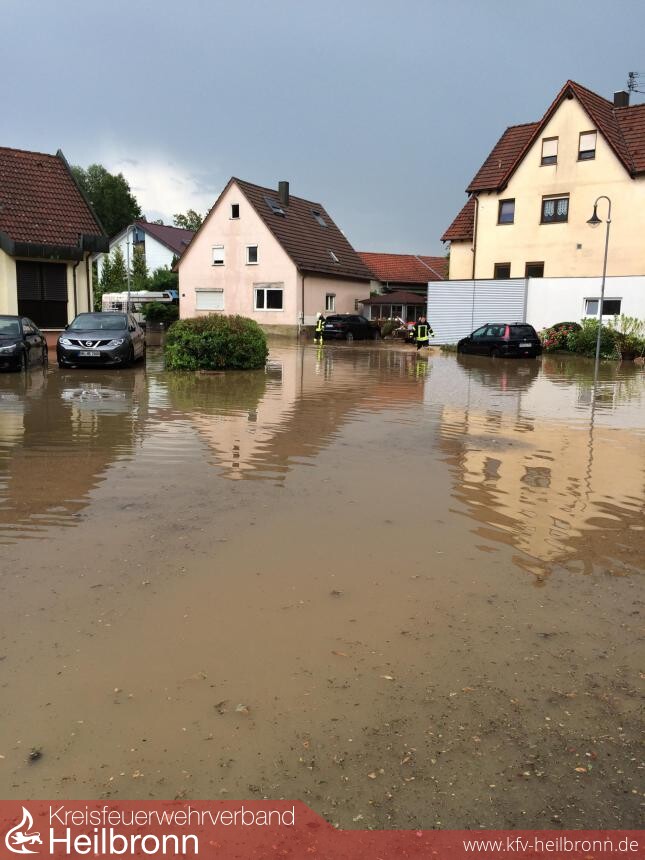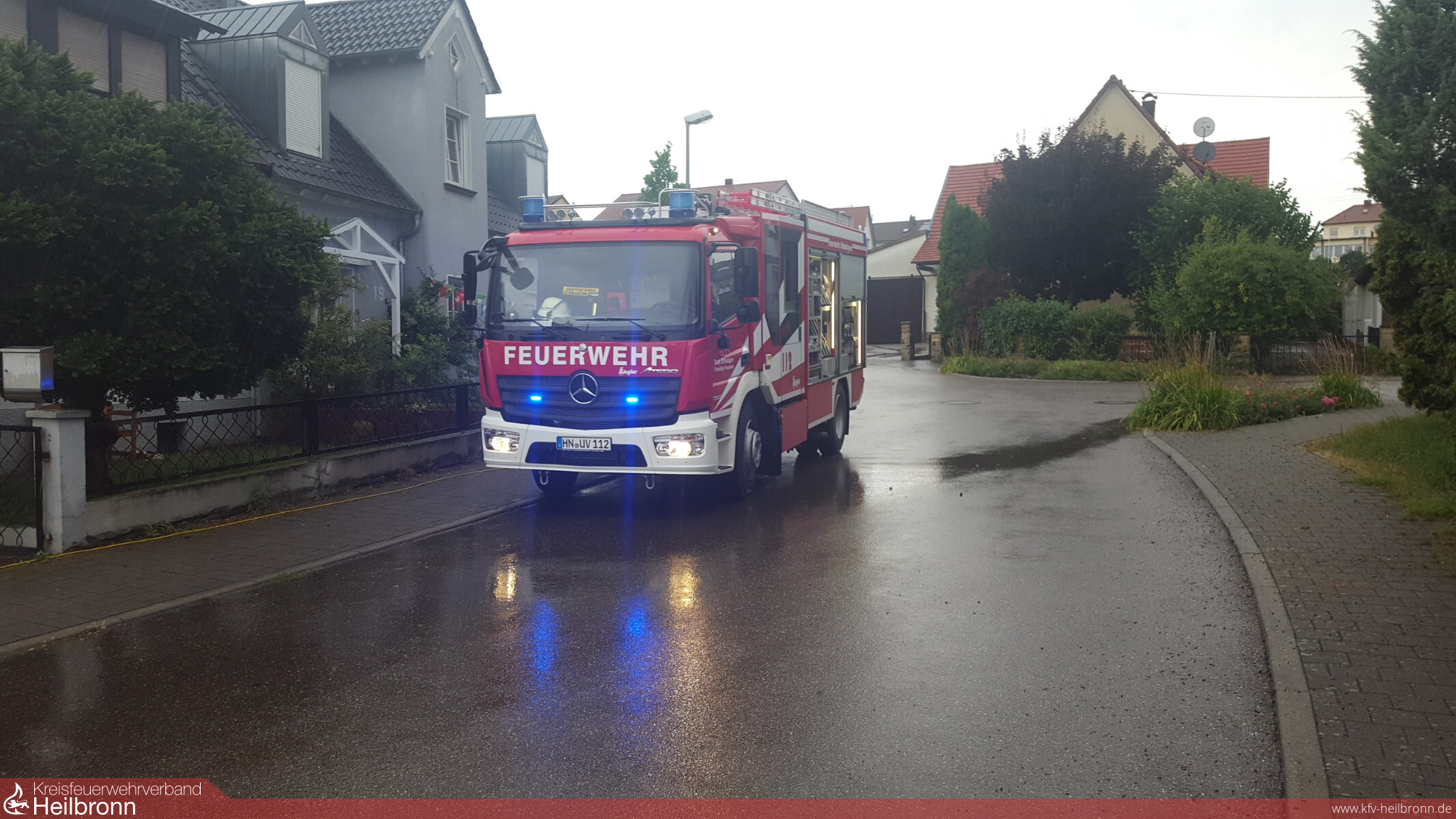 Am späten Sonntagnachmittagen gingen extreme Niederschläge über der Kernstadt von Schwaigern nieder. Innerhalb von knapp 1 Stunden gingen teilweise bis zu 50 Liter Regen nieder. Das Wasser drang in Gebäude ein, Keller liefen voll, teilweise drohten Heizöltanks aufzuschwimmen. Im Stadtteil Massenbach blockiert ein Erdrutsch den Holderbuschweg. Im wesentlichen mussten aber Kellerräume ausgepumpt werden. Ab 16:27 Uhr gingen fast schon im Sekundentakt die Einsatzmeldungen ein. Auf Grund der vielen Meldungen wurden daraufhin auch die Abteilungen Stetten a.H. und Niederhofen alarmiert und nach Schwaigern beordert. In der Funkzentrale im Schwaigerner Feuerwehrhaus wurden die eingegangen Meldungen priorvisiert und dann den Einheiten zur Erledigung zugeteilt.