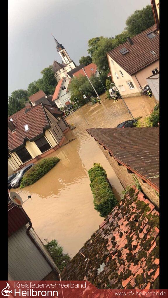 Um 17:18 kam die Meldung, dass auf einem Gartengrundstück an der Heilbronner Strasse eine Person von den Wassermassen in einem Gartenhaus eingeschlossen ist. Sofort wurden Einheiten an anderen Einsatzstellen abgezogen und dorthin beordert. Parallel erfolgte die Alarmierung des Rüstzuges der Feuerwehr Eppingen und Taucher der Berufsfeuerwehr machten sich auf den Weg. Nach kurzer Suche wurde die Frau gefunden und unversehrt gerettet.