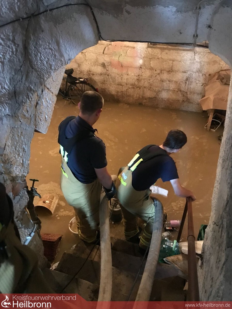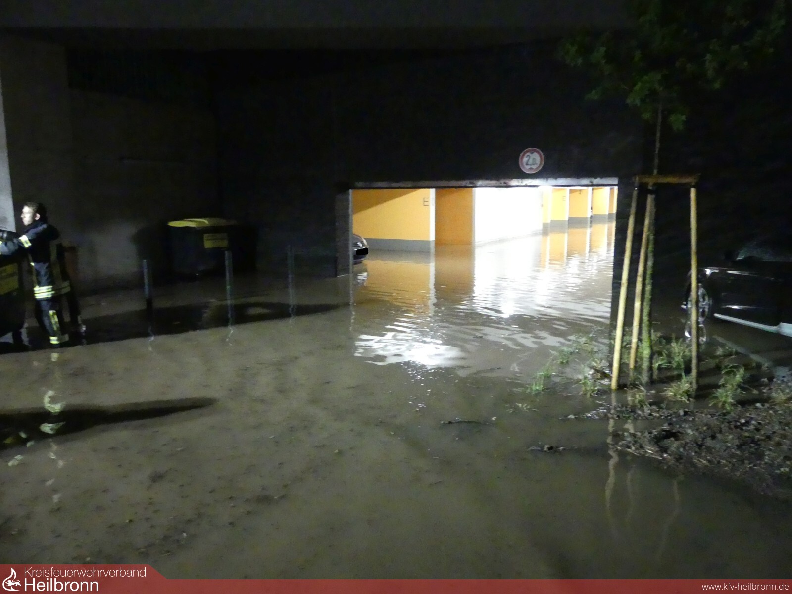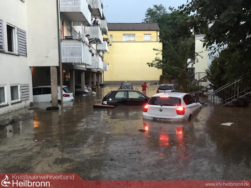 Zahlreiche Keller in Wohngebäuden, Tiefgaragen und sensiblen Bereichen von Firmen im gesamten Stadtgebiet liefen voll Wasser. Besonders heftig hatte es die Stadtteile Horkheim und Sontheim sowohl Bereiche der Innenstadt betroffen. Auch Straßen wurden überflutet und Äste von den Bäumen gerissen.