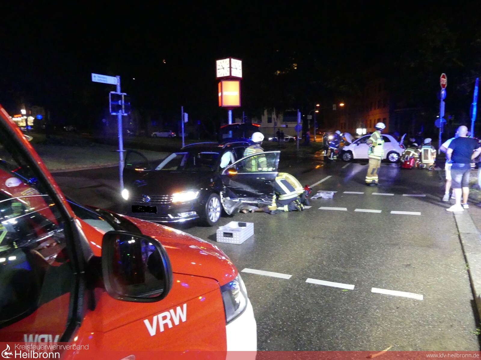 Am Rathenauplatz war es zu einem Verkehrsunfall mit zwei verletzten Personen gekommen, bei dem die Feuerwehr die Erstversorgungsmaßnahmen durchführte.