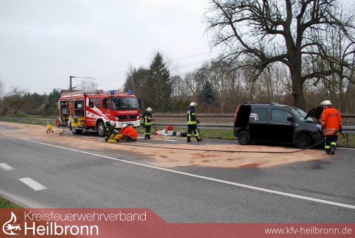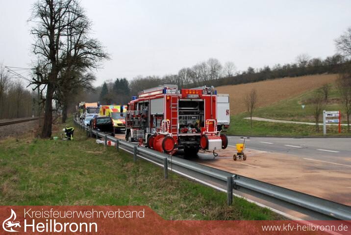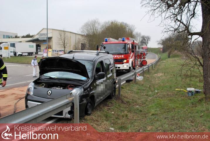 Auf der Kreisstrasse von Schwaigern nach Leingarten kam es in Höhe der Einfahrt zum Schwaigerner Industriegebiet zu einem Verkehrsunfall. Der Fahrer eines VAN kam nach links von der Fahrbahn ab und schanzte dort über das im Boden auslaufende Ende einer Leitplanke. Das Fahrzeug kam aber wieder auf die Fahrbahn zurück. Nach einer kurzen Weiterfahrt blieb es dann mit der Fahrerseite an direkt an der Leitplanke stehen.
