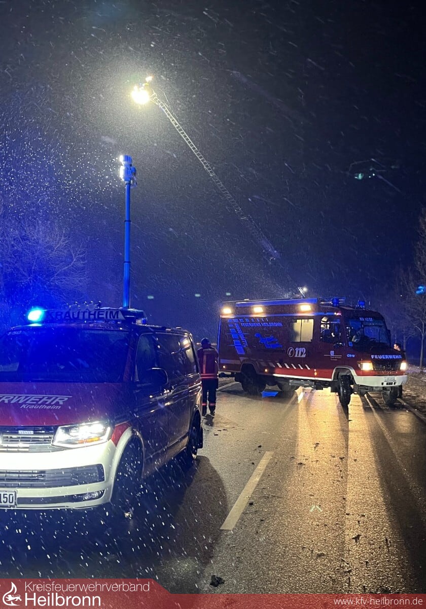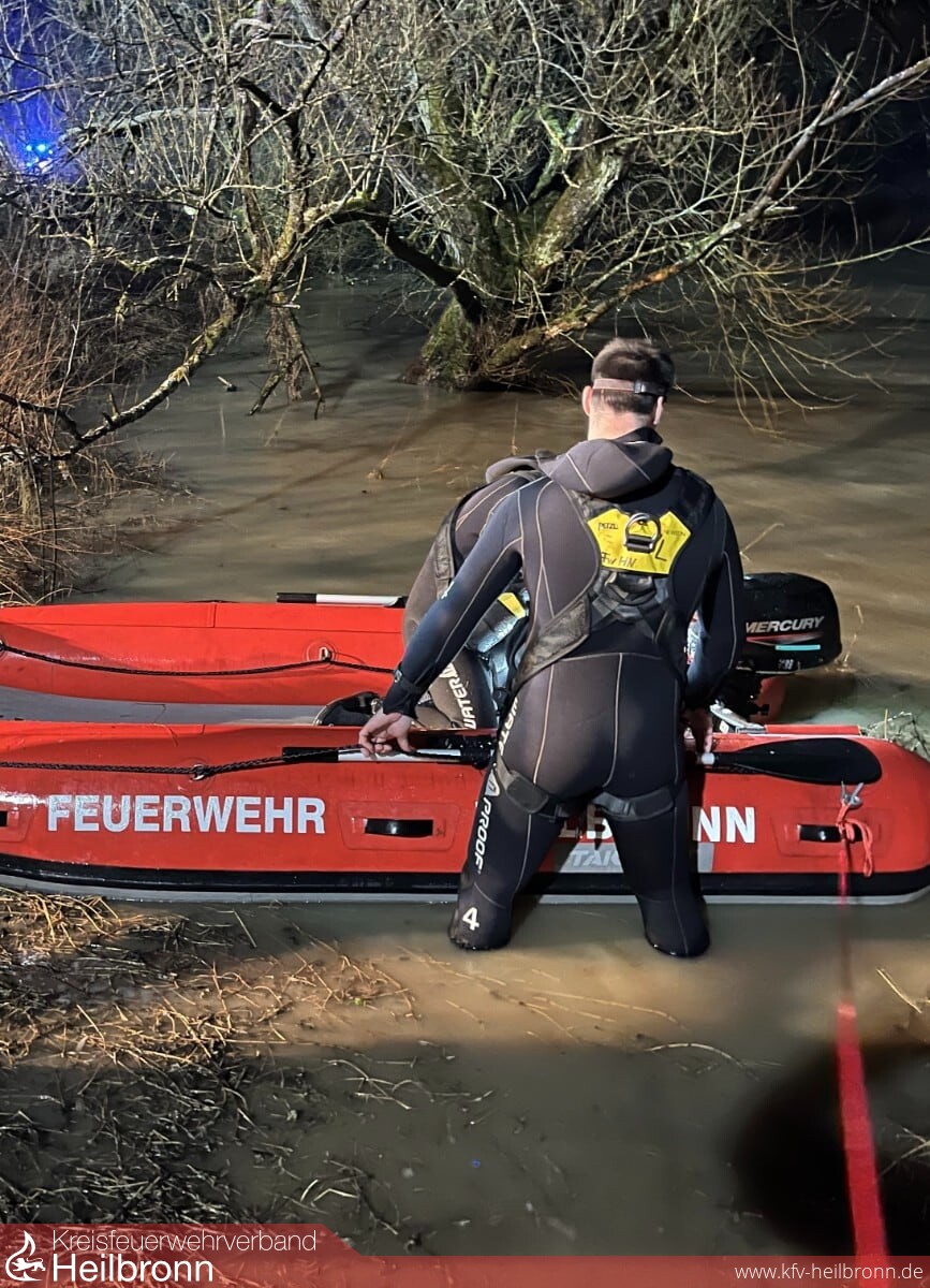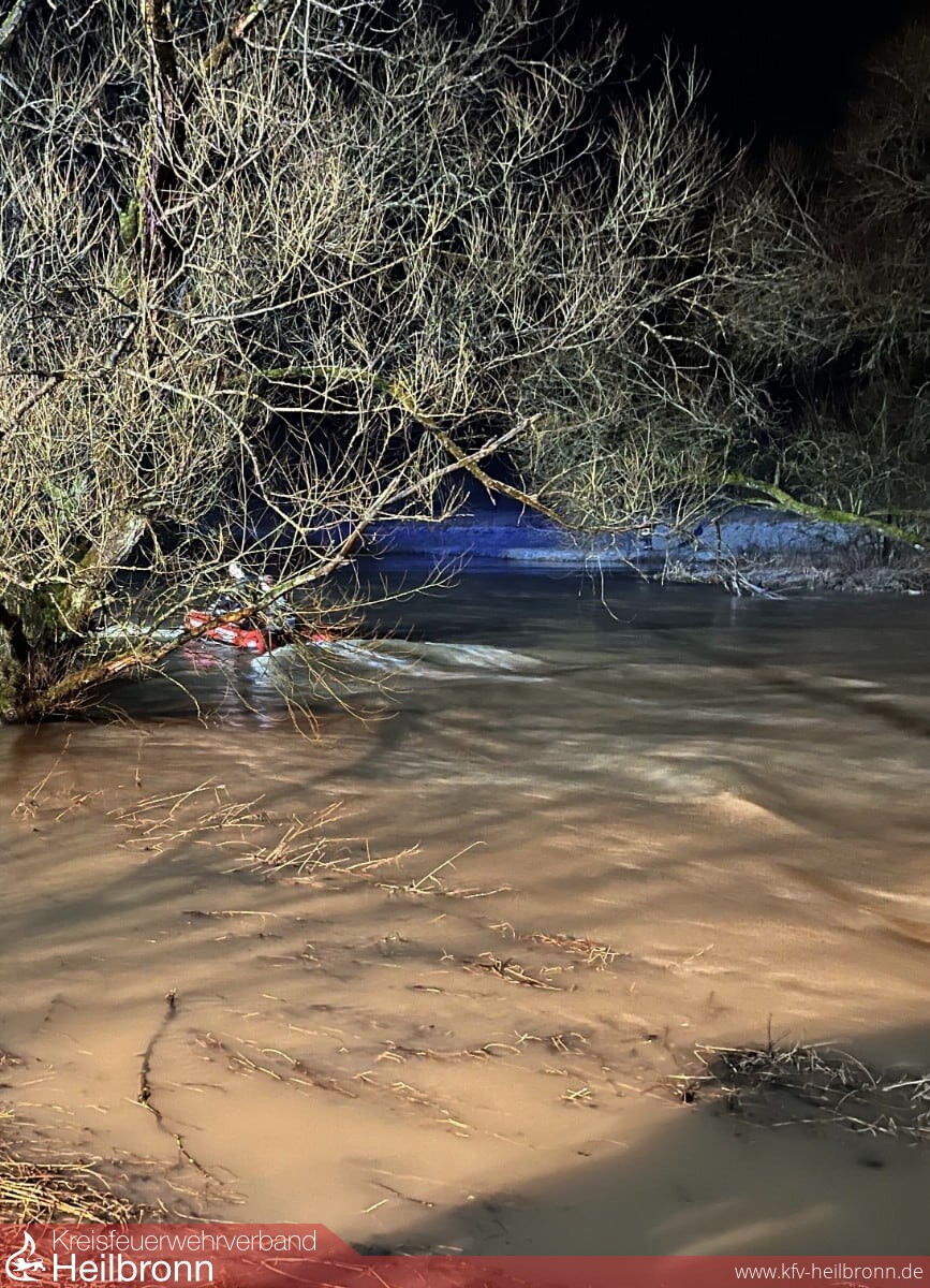 Am gestrigen Donnerstag rückte der Wasserrettungszug zu einem Unfall nach Dörzbach im Hohenlohekreis aus. Eine 76-jährige Frau war gegen 18.45 Uhr mit ihrem Fahrzeug auf der B19 von Hohebach in Richtung Dörzbach unterwegs gewesen. Aufgrund der glatten Straßenverhältnisse verlor sie die Kontrolle über ihren Wagen und streifte einen anderen Verkehrsteilnehmer. Anschließend geriet ihr Auto nach links von der Fahrbahn ab und stürzte in die Jagst. Das Auto trieb in dem Fluss ab und ging schließlich unter. Trotz intensiver Suche mit Booten und zwei Drohnen konnte die Frau erst gegen 21.20 Uhr tot zwischen Ästen im Uferbereich geborgen werden. Die Suche nach dem Fahrzeug wurde gegen 22.40 Uhr eingestellt und wird heute bei Tageslicht und nach Normalisierung des Wasserpegels fortgeführt.