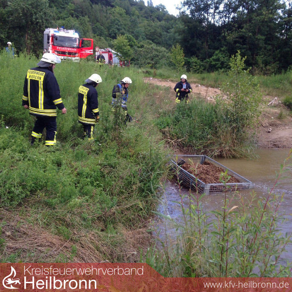 Zu einer Gewässerverunreinigung wurden die Feuerwehren Widdern und Möckmühl an das Biotop an der Jagst alarmiert.