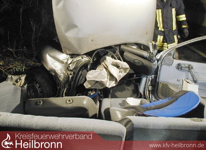 Vermutlich die nicht angepasste Geschwindigkeit auf spiegelglatter Fahrbahn wurde einem Autofahrer am Samstag zum Verhängnis. Gegen 05.17 Uhr war der Mann mit seinem Opel Corsa auf der B 293 Heilbronn in Richtung Leingarten unterwegs. Auf Höhe des Gewerbegebiets Böckingen West kam der Wagen ins Schleudern. Unglücklicherweise prallte das Fahrzeug mit der Fahrerseite gegen den einzigen massiven Baum am Straßenrand. Durch die sehr starke Deformation der Fahrerseite, wurde auch die Lenksäule bis hin zur Fahrzeugmitte verschoben. Unter Einsatz von mehreren hydraulischen Rettungsgeräten konnte der im Beinbereich eingeklemmte Mann von der Feuerwehr befreit werden. Der Rettungsdienst übernahm die weitere Versorgung und lieferte den Patienten in ein Krankenhaus ein.