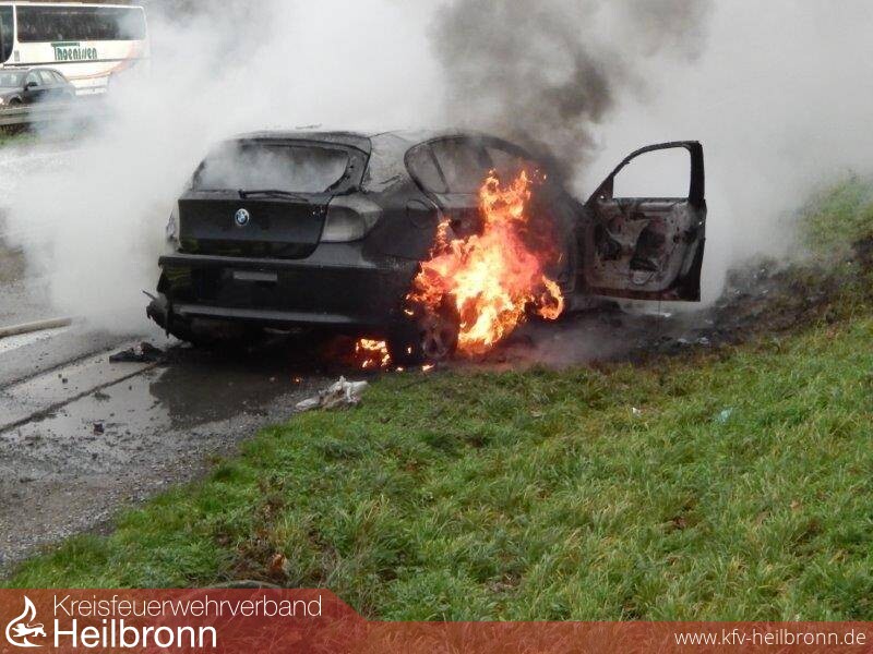 Vor Ort brannte ein BMW der 1er-Reihe in voller Ausdehnung.