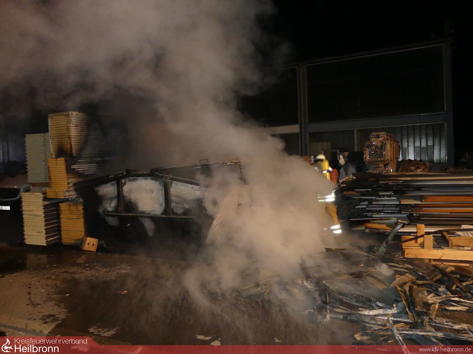 Durch den schnellen Einsatz der Feuerwehr konnte ein Übergreifen des Brandes auf die angrenzende Lagerhalle verhindert werden.