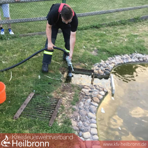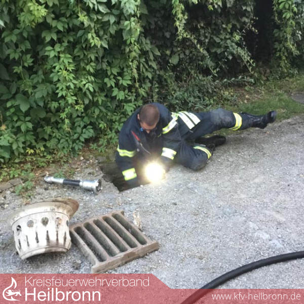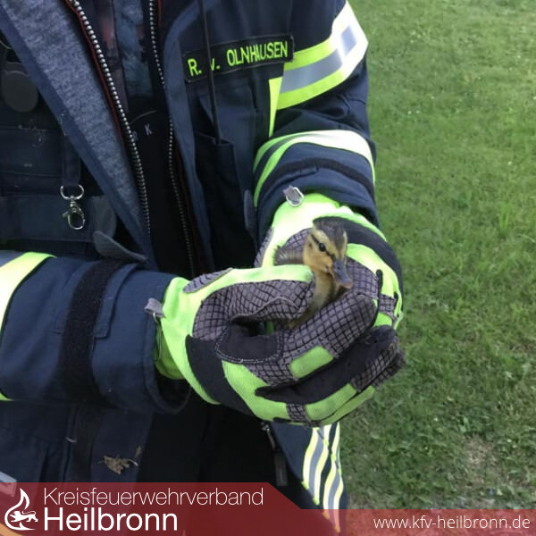 Zu einem nicht alltäglichen Einsatz wurde die Werkfeuerwehr, am 27.07.2016 um 20:20 Uhr, durch die Integrierte Leitstelle Heilbronn, alarmiert. Das Einsatzstichwort auf dem Meldeempfänger lautete „Tiernotlage/Kadaver“. An der Einsatzstelle eingetroffen, stellte sich folgende Lage dar: Durch Besucher der Kleintieranlage wurde ein „Quieken“ aus dem Überlaufrohr des Teiches im Kleintiergehege wahrgenommen. Die Entenküken hatten sich in einem Überlaufrohr „verirrt“, und konnten sich nun nicht mehr selbstständig aus dieser misslichen Lage befreien. Erste „Befreiungsversuche“ der Entenküken durch einem auf dem Gelände wohnenden Feuerwehrkameraden scheiterten, was die Alarmierung der Werkfeuerwehr erforderte. Durch die ersteintreffenden Einheiten, wurden die nächsten Ablaufschächte geöffnet, Ablaufrohre zu dem naheliegenden Weissenhofbach verschlossen. Ein erstes Entenküken wurde bereits aus dem ersten Schacht befreit und der Mutter zugeführt. Des Weiteren wurde eine Spülung des Überlaufrohres vorgenommen, welches das „Herausspülen“ der Entenküken im ersten Ablaufschacht ermöglichte. Hier wurden 2 weitere Küken aufgenommen, welche ebenso „wohlauf“ der Mutter überbracht wurden. Somit konnten alle Entenküken gerettet werden und der Einsatz wurde erfolgreich beendet. Nicht nur für die Kameraden der Feuerwehr war die „Rettungsaktion“ ein Erfolgsereignis, auch zahlreiche Besucher konnten die Aktion mitverfolgen und erfreuten sich darüber, das „Quieken“ der Küken wieder aus dem Tiergehege zu hören.