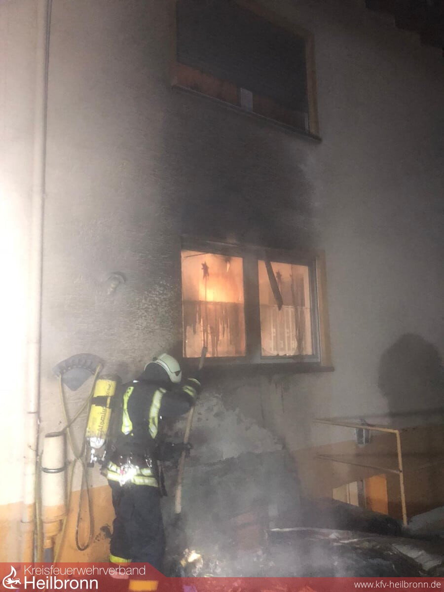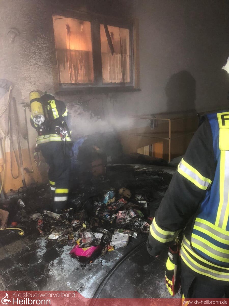 Am späten Dienstagabend wurde die Feuerwehr Oedheim mit dem Stichwort „Brand an Fassade“ in das Oedheimer Neudorf alarmiert. Glück im Unglück, dass aufmerksame Nachbarn die Feuerwehr alarmierten, die schlafenden Bewohner weckten und bereits erste Löschversuche einleiteten. Dieses beherzte Eingreifen verhinderte wohl Schlimmeres. Bei Eintreffen der ersten Kräfte brannten mehrere Mülltonen, welche direkt am Gebäude standen. Während der Erkundung konnte festgestellt werden, dass das Kellerfenster, welches unmittelbar vom Feuer betroffen war bereits geborsten war. Hierbei kam es zu einem Rauch- und Hitzeeintrag in den Kellerbereich. Das ebenso vom Brand betroffene Fenster im Erdgeschoss war bereits mehrfach gesprungen sowie der Rolladen geschmolzen. Der Brand im Außenbreich konnte durch einen Trupp unter PA mit dem Schnellangriff abgelöscht werden. Ein weiterer Trupp kontrollierte den betroffenen Kellerbereich, sowie die Fassade mittels Wärmebildkamera.