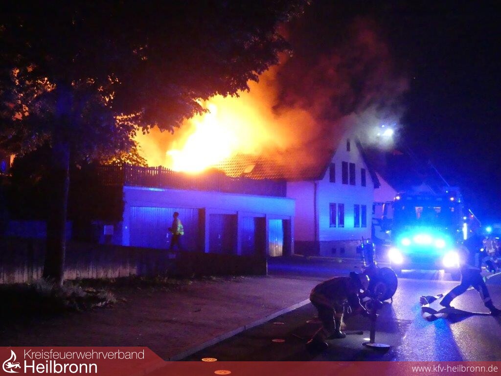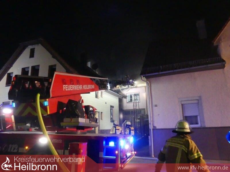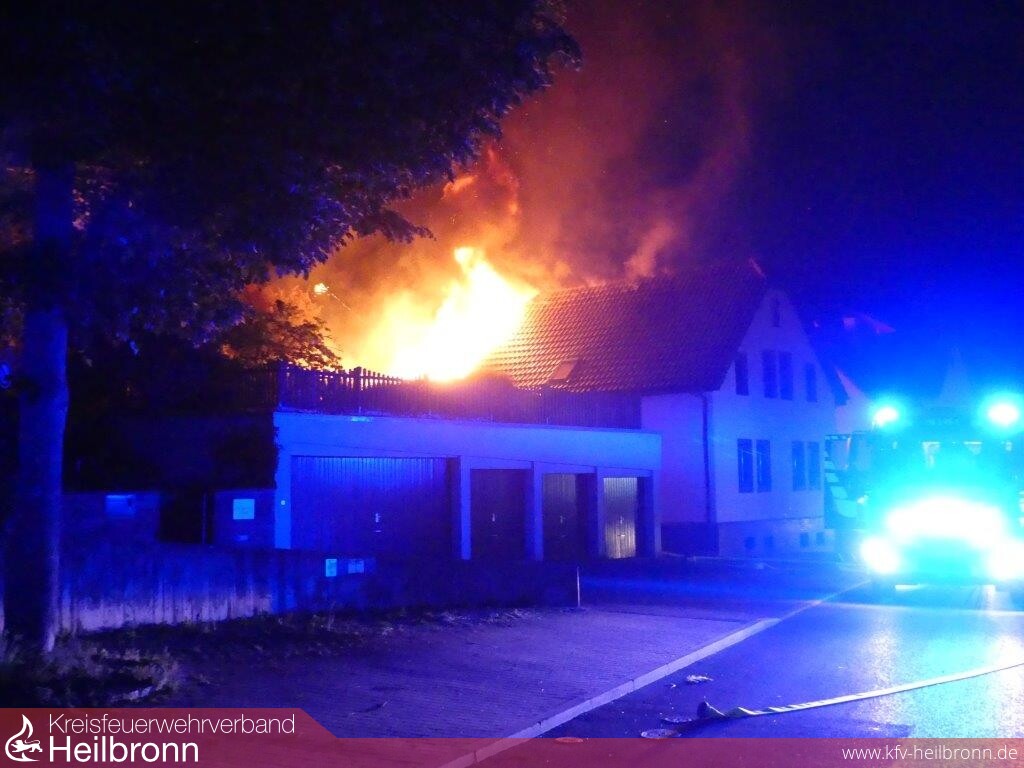 Zahlreiche Anrufer meldeten um 21.36 Uhr einen Dachstockbrand in der Heilbronner Heuchelbergstraße. „Die Flammen greifen bereits auf die Nachbargebäude über“ wurde der Integrierten Leitstelle über den Euronotruf 112 mitgeteilt.