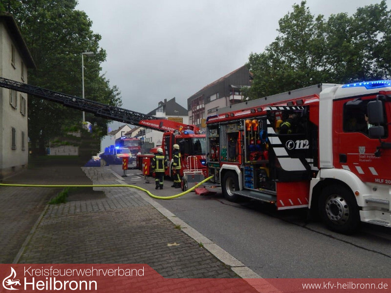 Beim Eintreffen der Einsatzkräfte vor Ort, drang dichter Rauch aus den Kellerfenstern des Gebäudes aus. Durch die Thermik war der Rauch bereits an der Hauswand entlang nach oben gestiegen und über die offenstehenden Fenster in die Wohnungen eingedrungen.