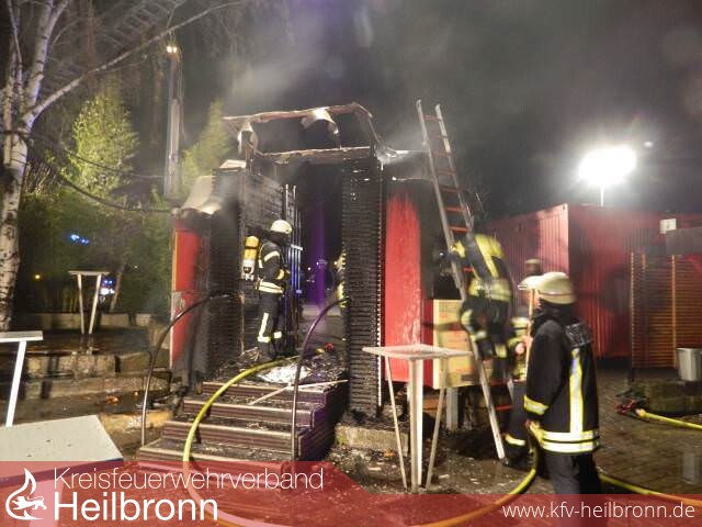 Bei dem Brand im Außenbereich der Heilbronner Szenekneipe Green Door ermittelt die Heilbronner Polizei nach eigenen Angaben wegen Brandstiftung. Gegen 22.20 Uhr standen am Donnerstagabend zwei Kassenhäuschen am Eingangsbereich in Flammen.