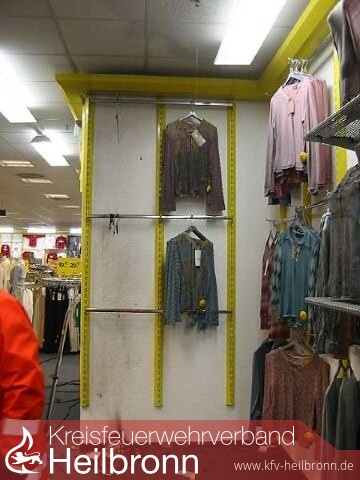 In einem Bekleidungsgeschäft in Neckarsulm brannten mehrere Blusen auf einem Kleiderständer an der Wand. Beim Eintreffen der Feuerwehr an der Einsatzstelle war war der Laden bereits geräumt und der Brand durch die ausgelöste Sprinkleranlage und den Einsatz eines Pulverlöschers durch einen Mitarbeiter gelöscht. Der gesamte Verkaufsraum war jedoch verraucht. Der Verkaufsraum wurde unter Anwendung von zwei Hochdrucklüftern entraucht und das über die Sprinkleranlage ausgetretene Wasser mit vier Wassersaugern aufgenommen. Zwei Personen mit Verdacht auf Rauchgasinhalation wurden von der Feuerwehr bis zum Eintreffen des Rettungsdienstes erstversorgt.