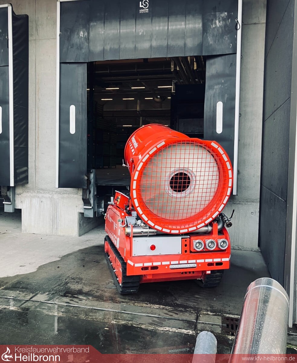 Am gestrigen Mittwoch wurde gegen 16 Uhr das ferngesteuertes Lösch-Unterstützungsfahrzeug mit Raupenfahrwerk (LUF 60) zu einem Firmengelände in der Waldenburger Max-Eyth-Straße angefordert. Vor Ort war ein Feuer an der Lüftung eines Brennofens ausgebrochen. Die örtlichen Einsatzkräfte hatten den Brand schnell unter Kontrolle. Die Feuerwehr Heilbronn unterstützte bei der Entrauchung der Halle mit dem mobilen Lüfter.