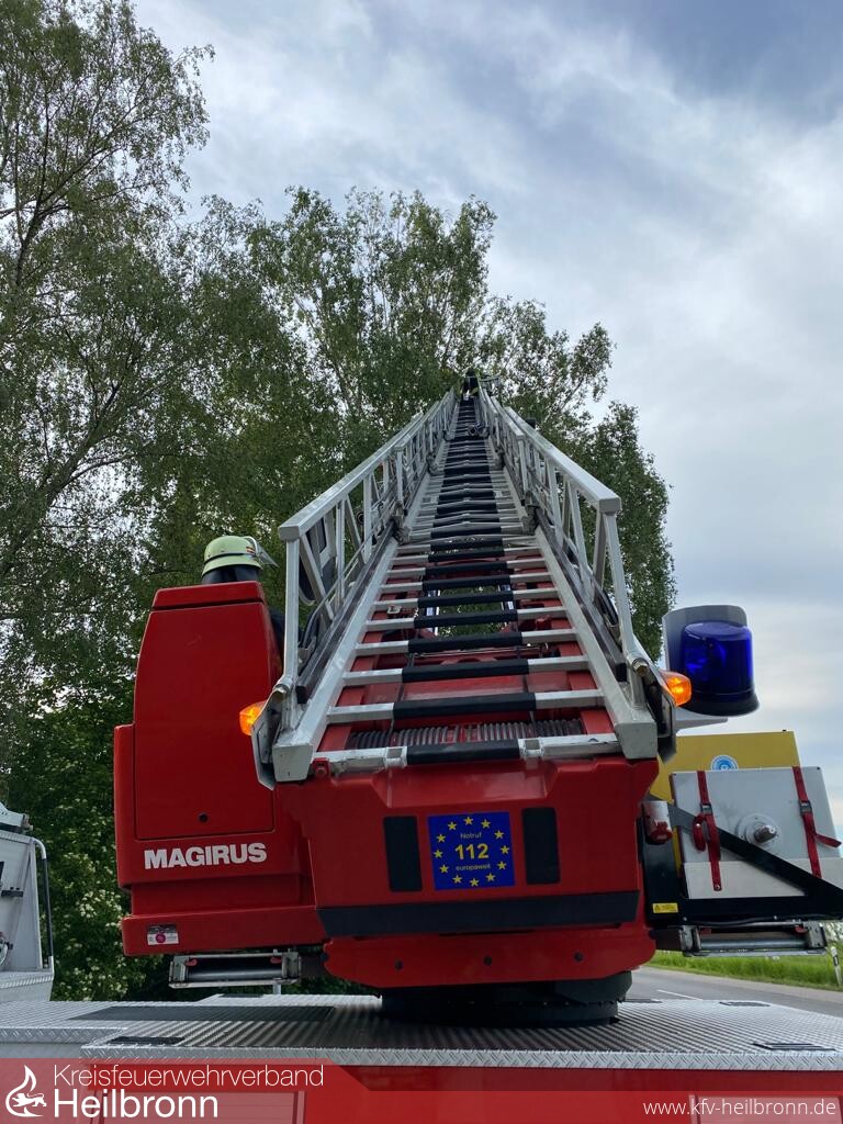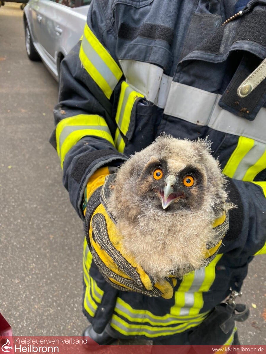 Zu einer Tierrettung in Lehrensteinsfeld musste die Feuerwehr Ellbachtal ausrücken. Der Nachwuchs eines Waldohreulenpaares mit drei Jungtieren wurde nach dem Verlust eines Muttertieres nicht mehr versorgt (Anmerkung: Männliche Eulen füttern die Jungen nicht …). Ein aufmerksamer Nachbar hat den Zustand der Tiere bemerkt und die Feuerwehr informiert. Da ein Zugriff auf die Tiere mit einer tragbaren Leiter nicht möglich war, musste eine Drehleiter zur Unterstützung aus Obersulm nachgefordert werden.