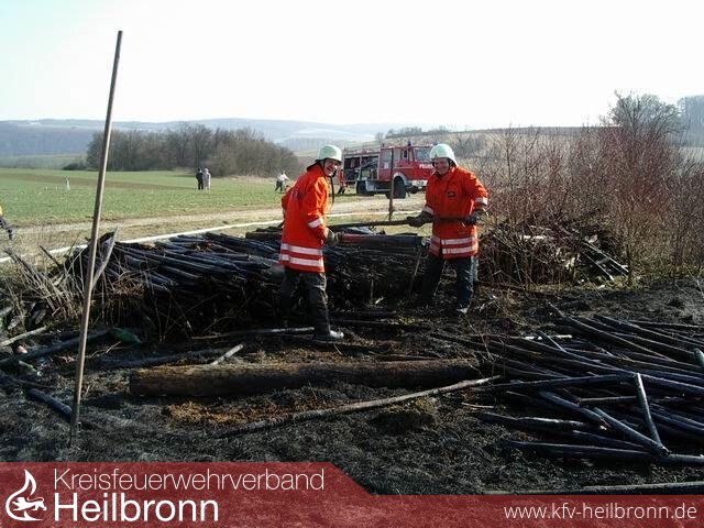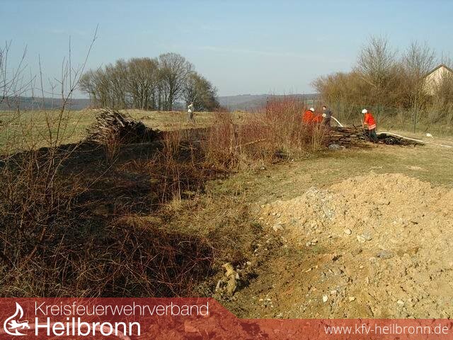 Zu einem Kleinbrand wurde die FF Möckmühl am Sonntag gerufen. Durch Fremdeinwirkung geriet ein Holzstapel am Stadtrand von Möckmühl in Brand. Der an diesem Nachmittag stark auflebende Wind setzte das trockene Gras eines benachbarten, brach liegenden, Grundstückes ebenfalls in Brand und entfachte einen Flächenbrand. Beim Eintreffen der FF Möckmühl standen bereits ca. 200 qm Fläche in Brand. Das Feuer war gerade in Begriff auf ein größeres trockenes Heckenstück überzugreifen. Ein rasches Ablöschen der Flammen in diesem Bereich verhinderte glücklicherweise den Übergriff und dadurch eine weitere Ausbreitung. Mit einem zweiten C-Rohr wurde der Holzstapel abgelöscht und anschließend von Hand abgetragen. Die FF Möckmühl war mit einem TLF 16/25 und sechs Einsatzkräften vor Ort. Zwei C-Rohre waren im Einsatz, welcher ca. eine Stunde dauerte.