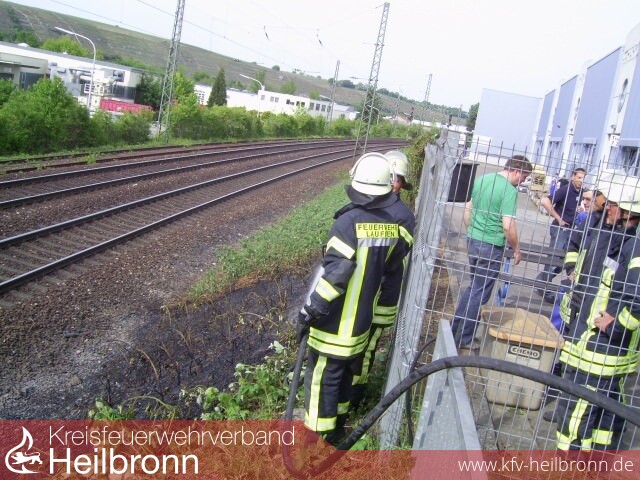 Zu einem Flächenbrand am Bahndamm der Bahnstrecke Stuttgart-Heilbronn wurde die Feuerwehr Lauffen alarmiert. Aus noch nicht geklärten Gründen ist es dort zu einem Brand von trockenen und teilweise abgestorbenen Teilen einer am Bahndamm wachsenden Brombeerhecke gekommen.
